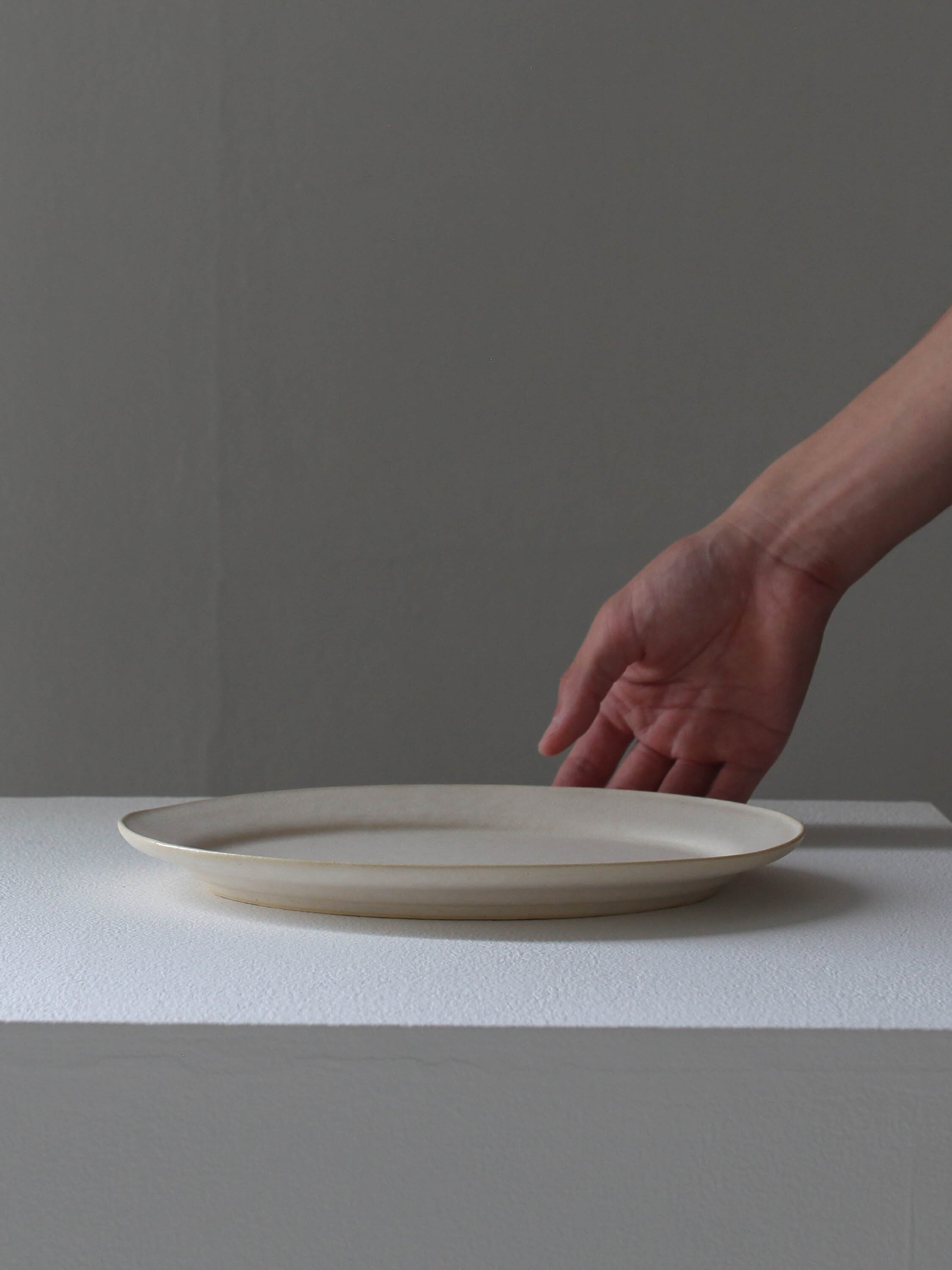 佐野さん柔らかい白を纏った作品が届きました。それらを並べたとき、私は道具というよりも、抽象的な道具の形をした土の塊を眺めている気持ちになりました。