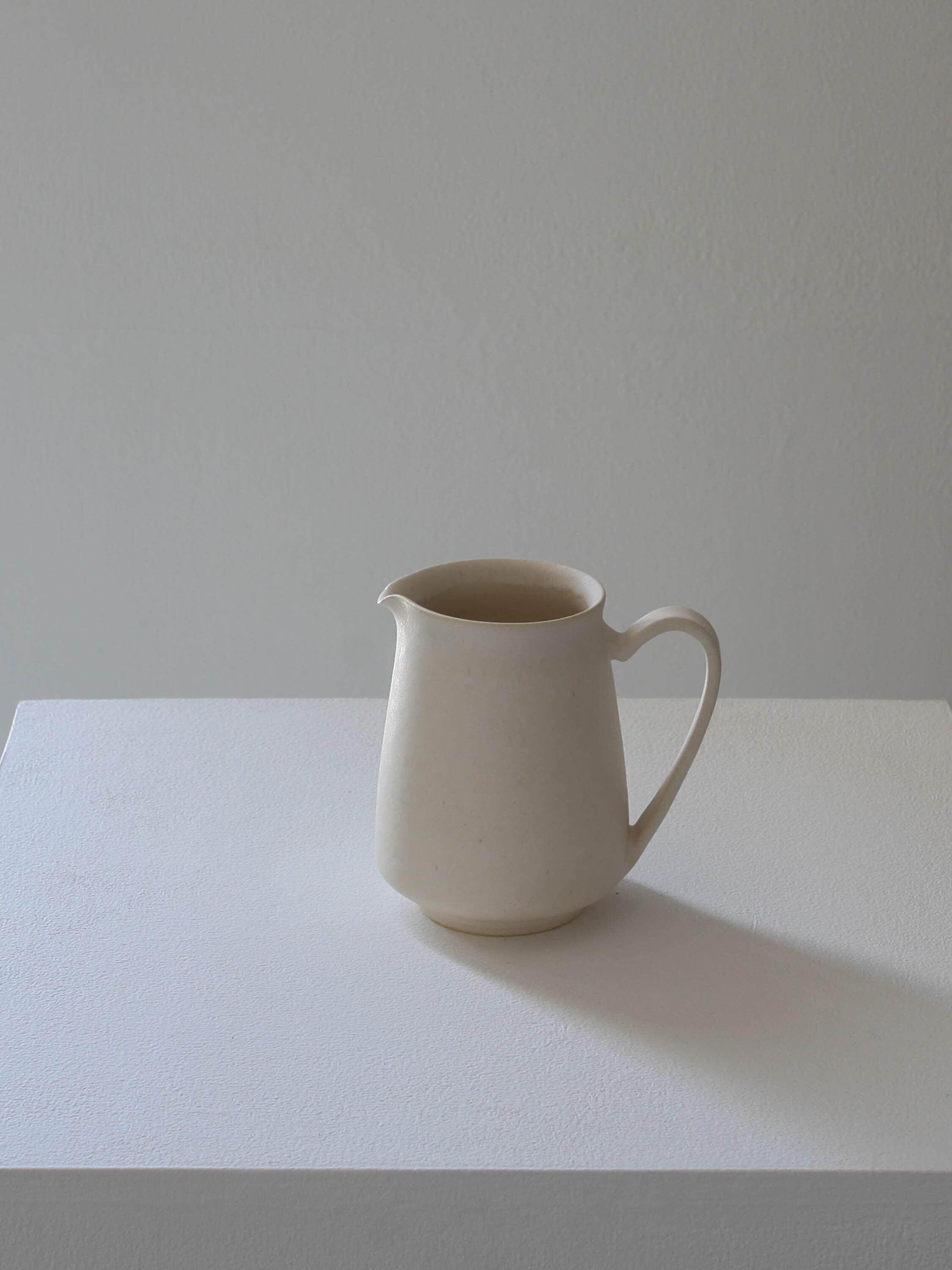 端正に整えられた造形と白い余白の中に、土と親しんだ手の跡や土本来の色質感が残されています。作品全体が白いベールに覆われたように、その内側の要素は織りなされ、ひとつひとつが特徴的な “姿” を生み出しています。