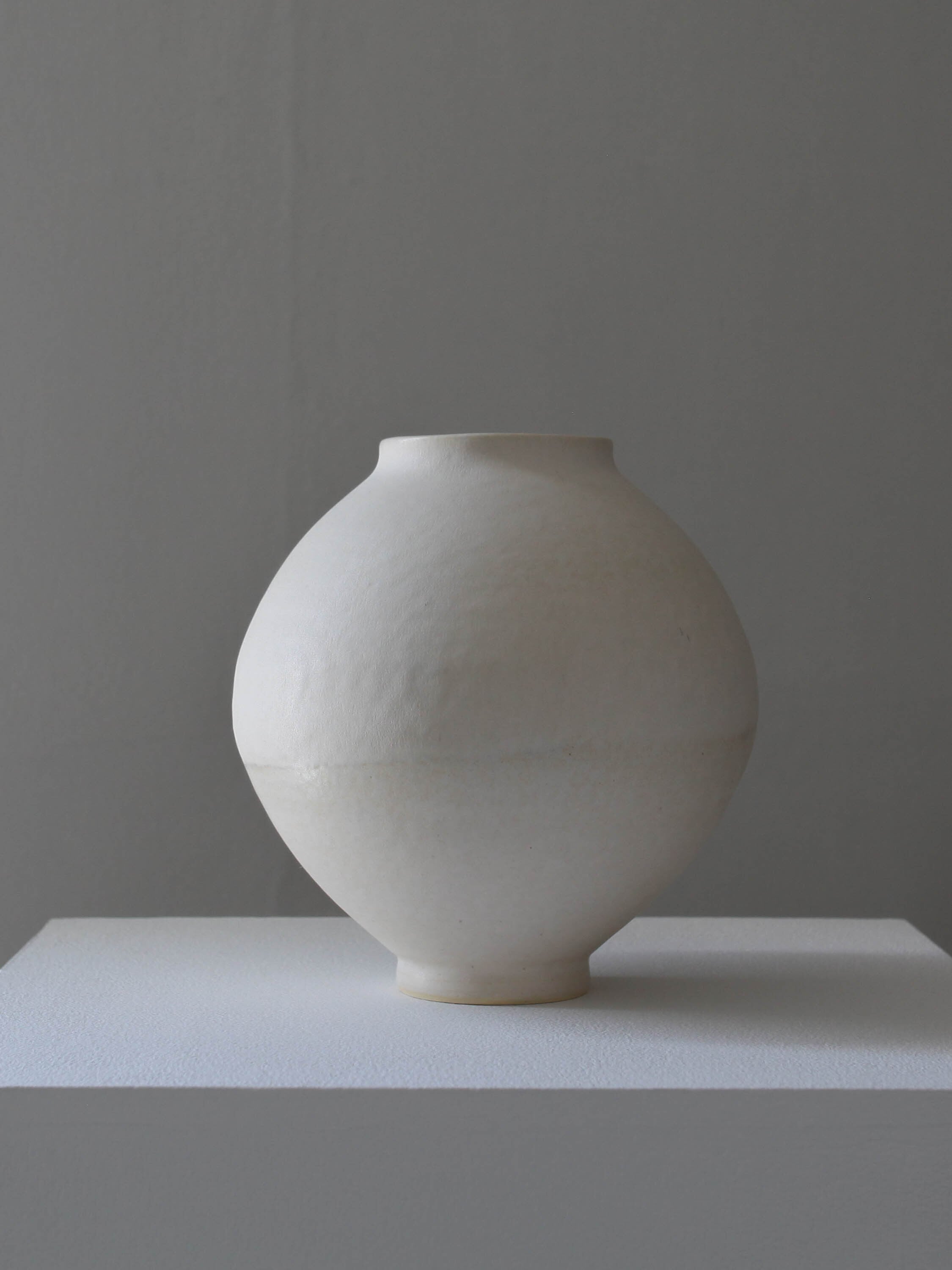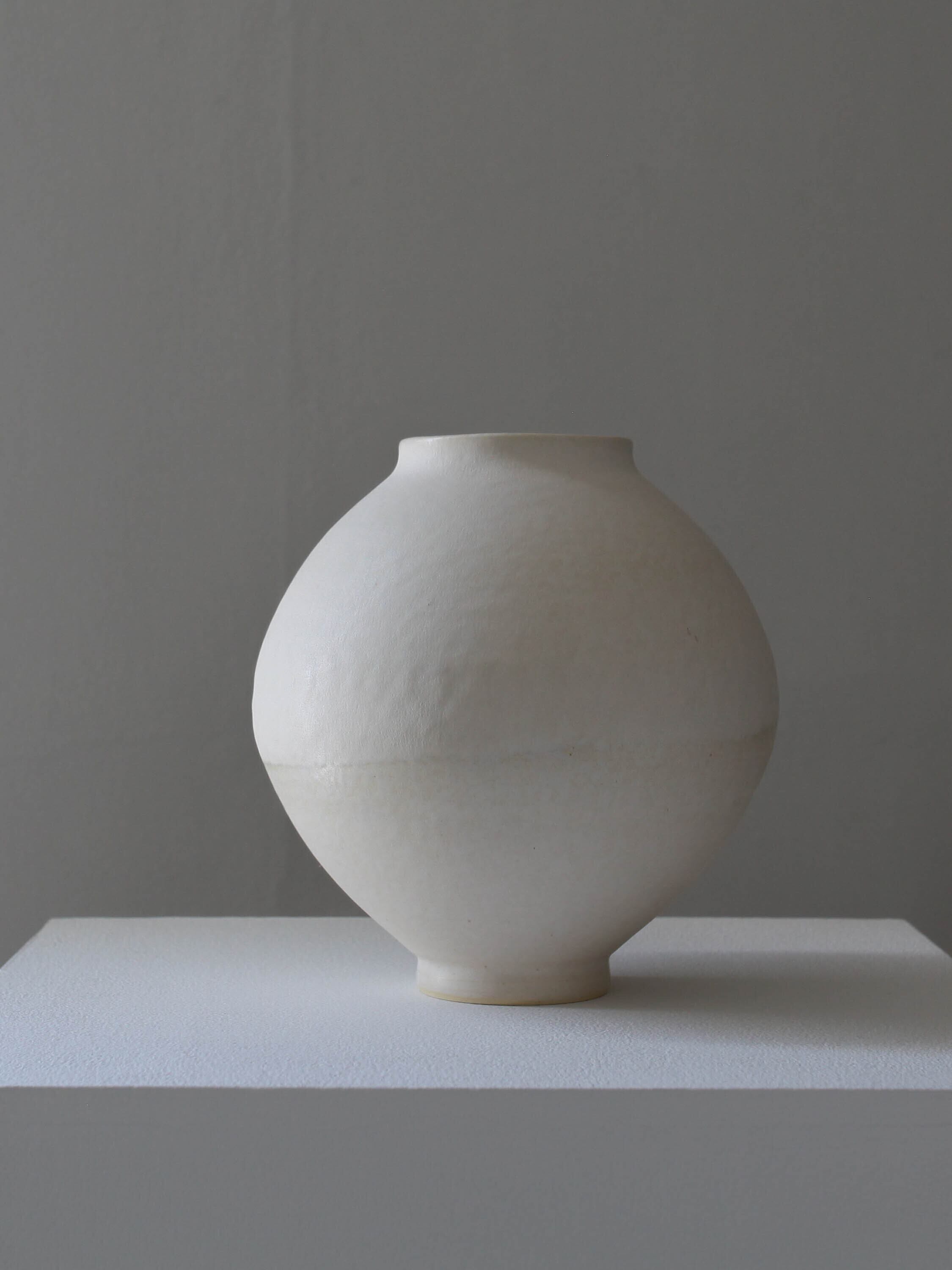 端正に整えられた造形と白い余白の中に、土と親しんだ手の跡や土本来の色質感が残されています。作品全体が白いベールに覆われたように、その内側の要素は織りなされ、ひとつひとつが特徴的な “姿” を生み出しています。