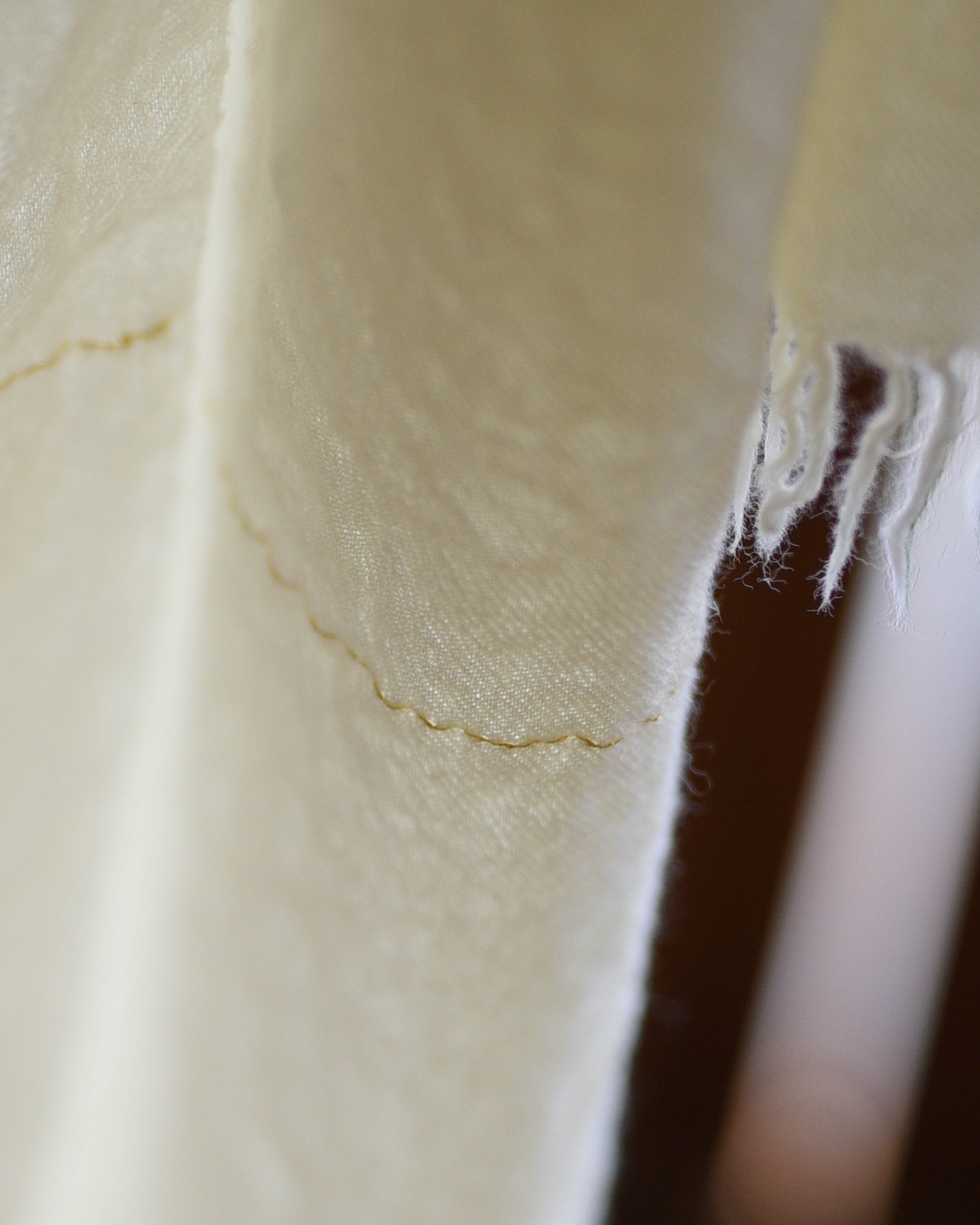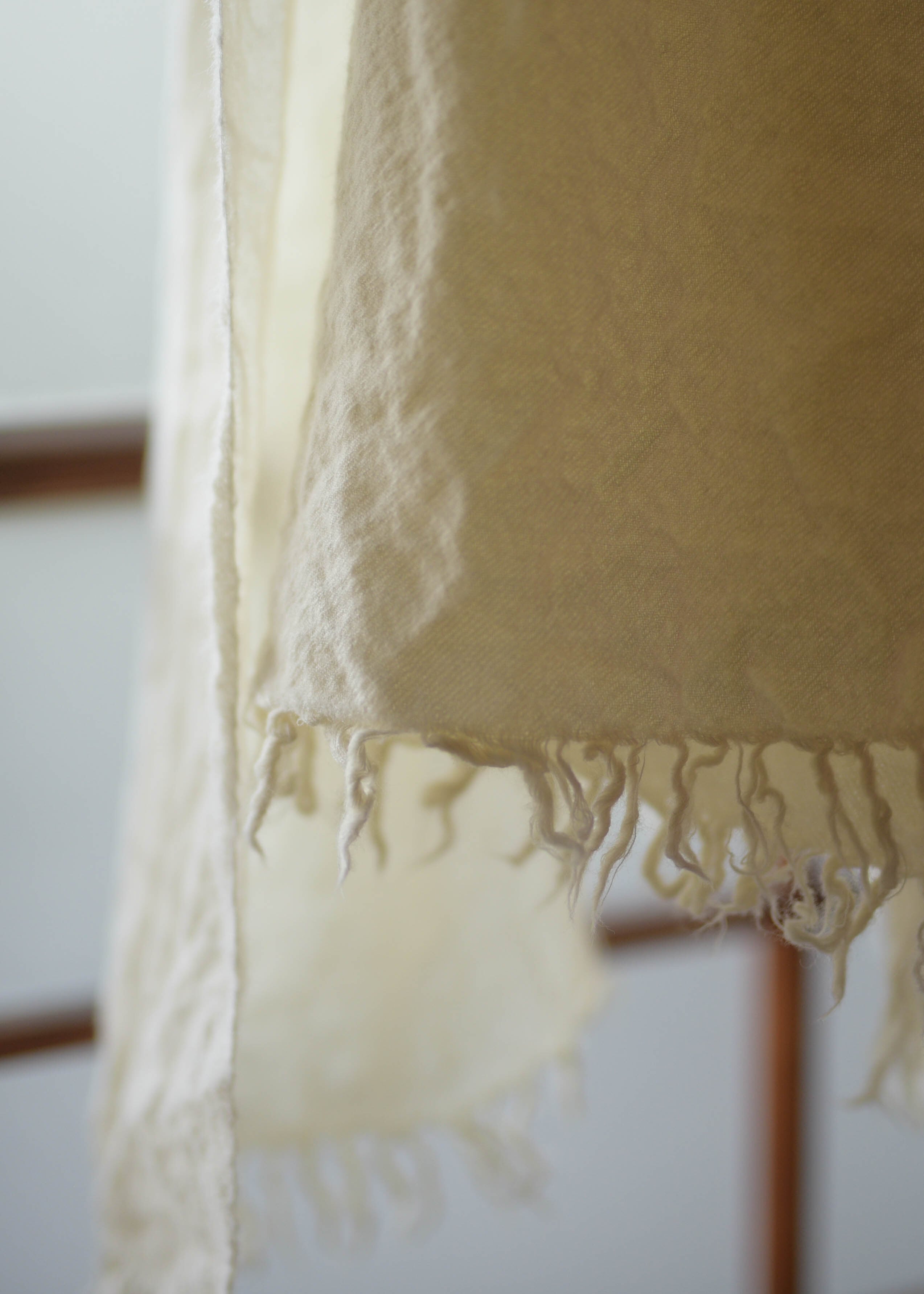 細番手ウールナチュラルカラー糸を甘く織り上げメタリックヤーンで少しだけ華やかさをプラスしました。