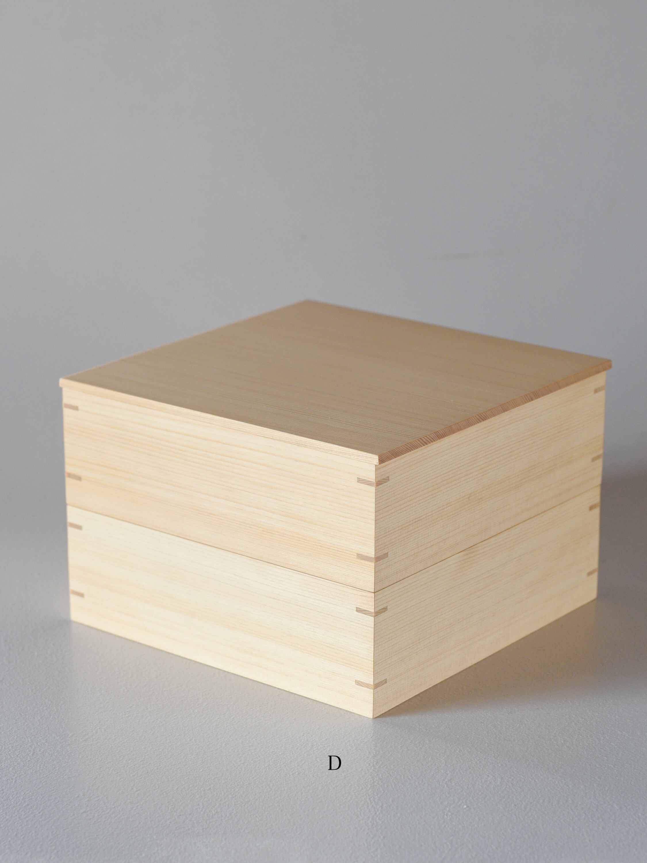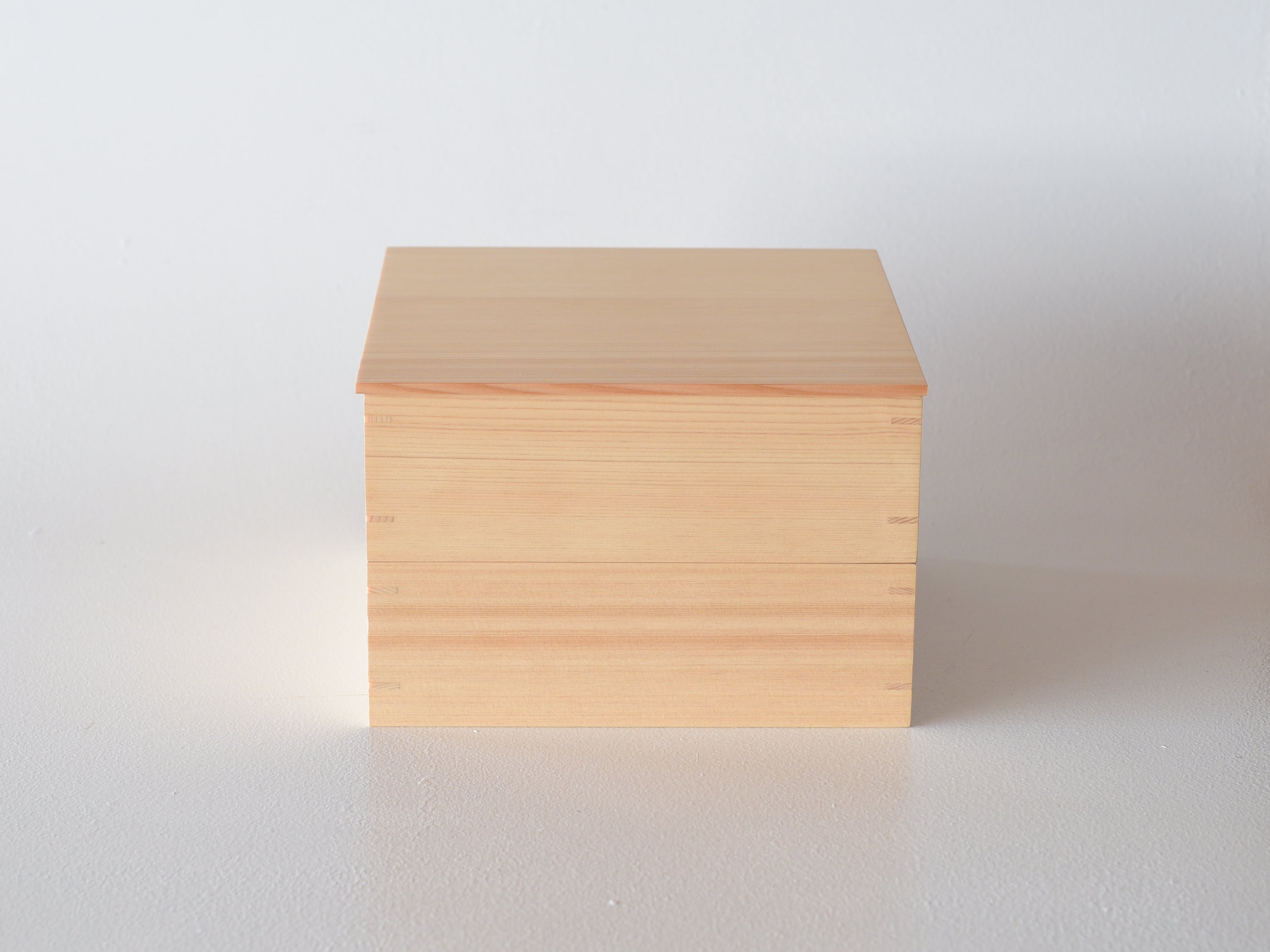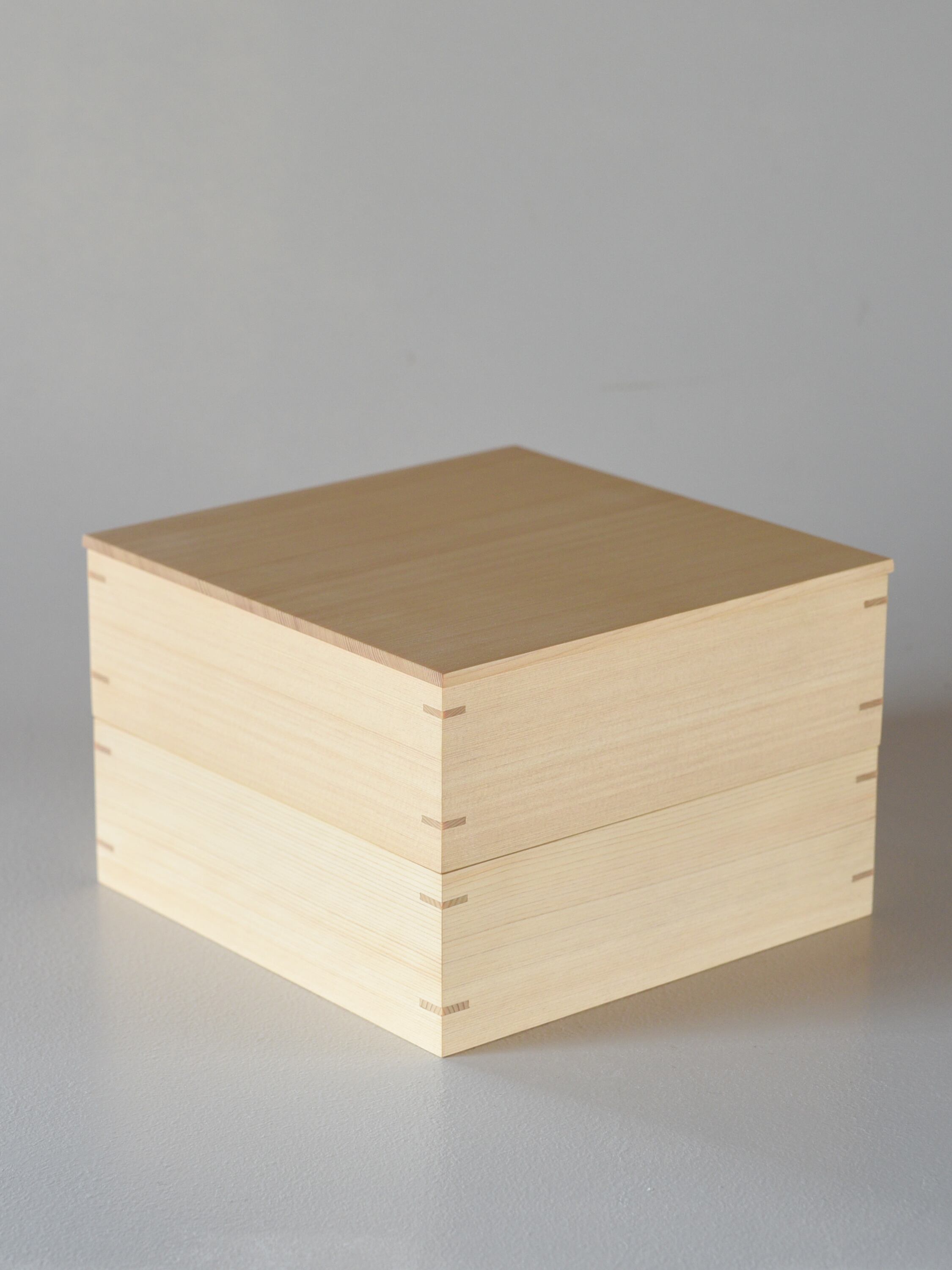 非常に細かく均一で美しい木目と、清々しく上品な香りが特徴の木曽檜を贅沢に使った重箱