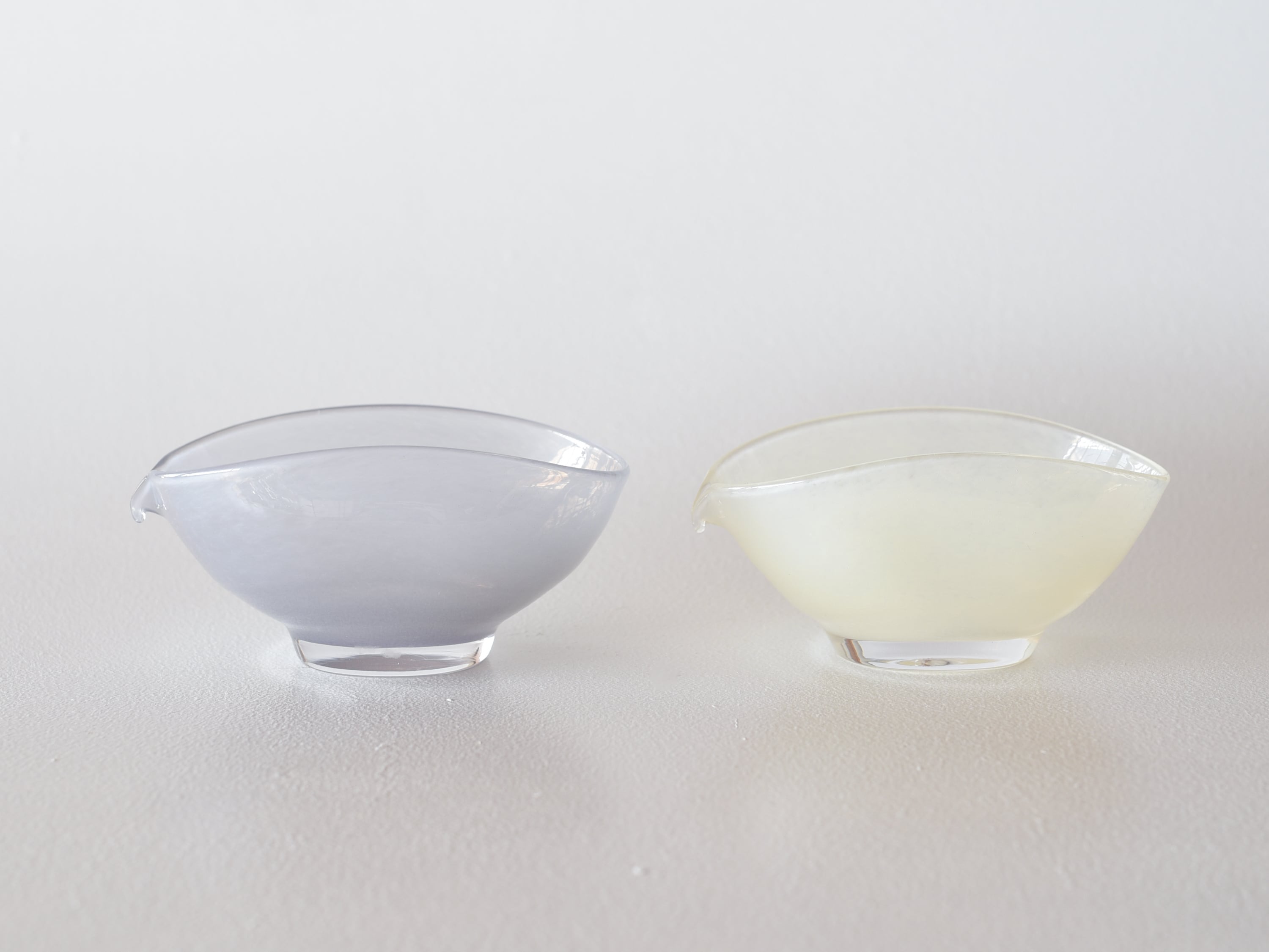 透明のガラスの間にガラス粉を入れて淡い色を表現しているダスティシリーズ