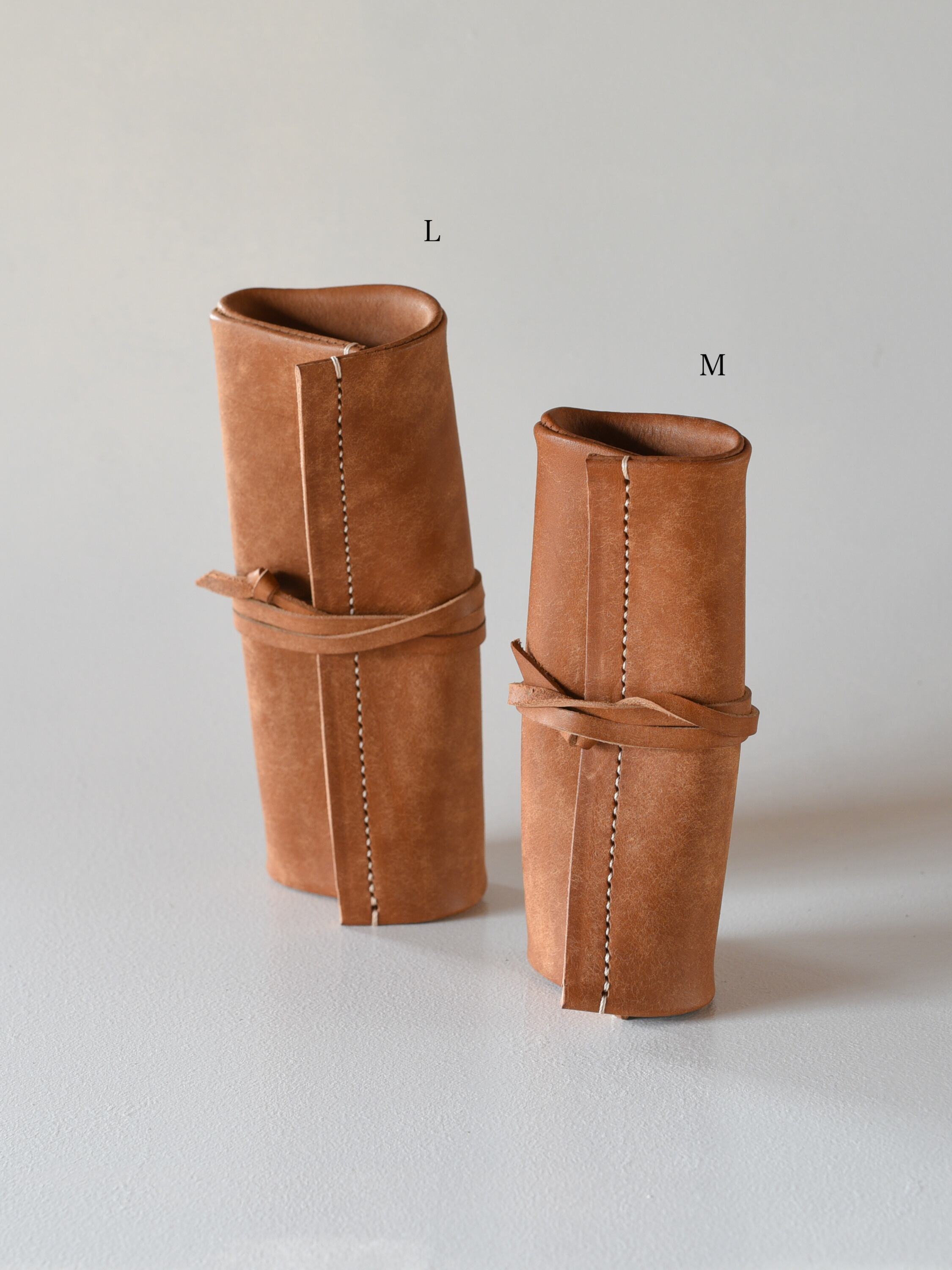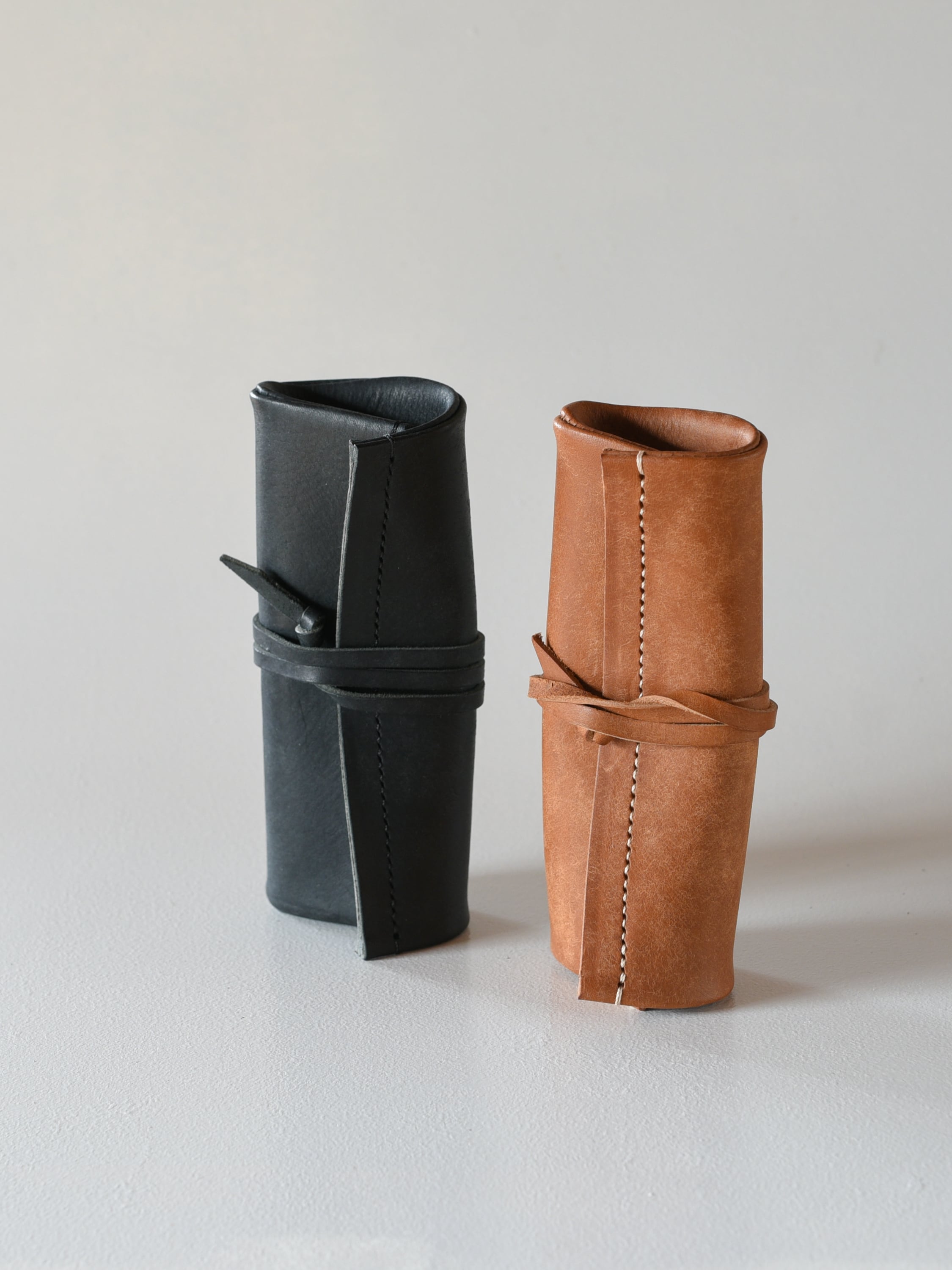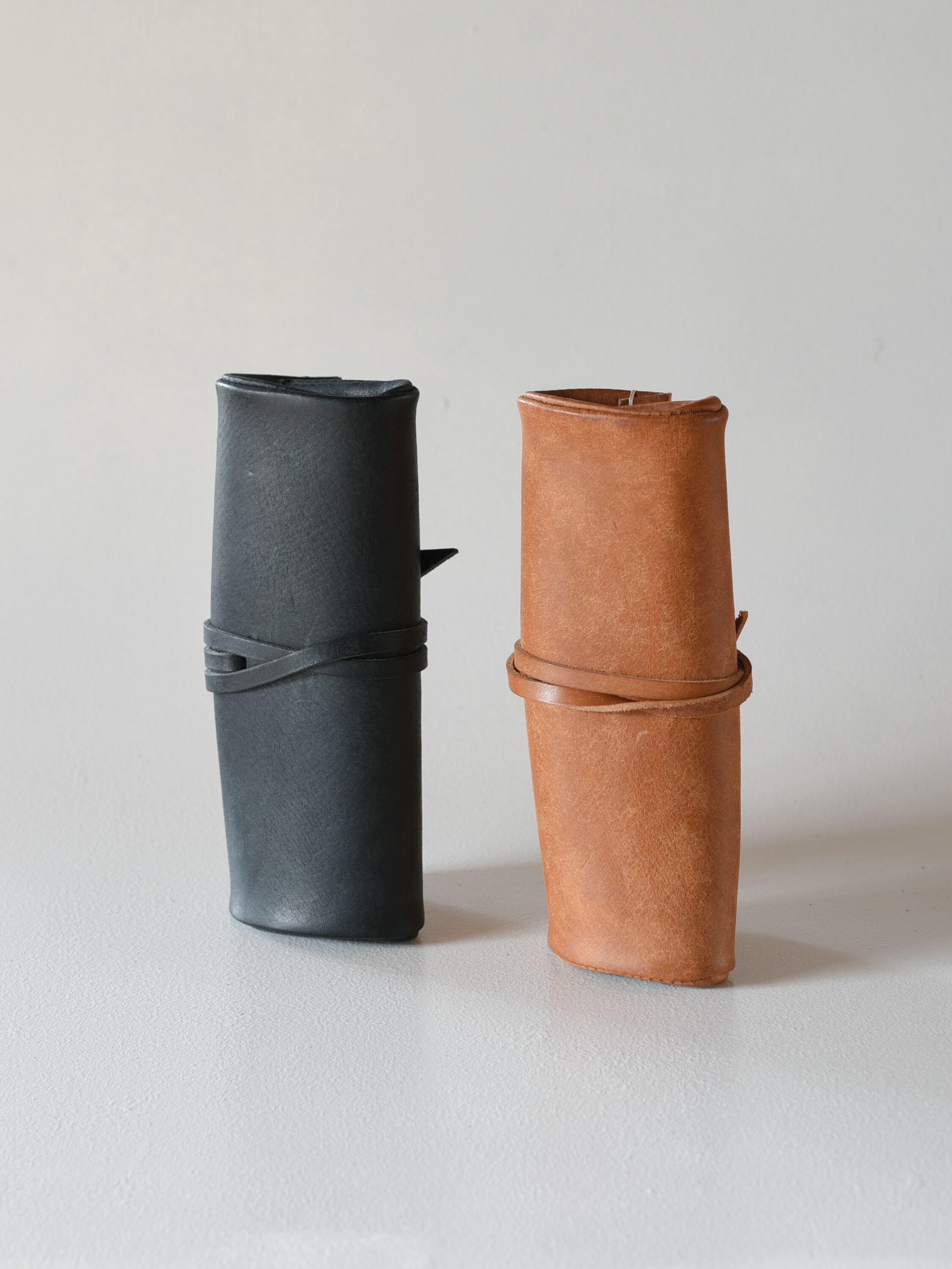 伝統的な革屋がおすすめする方法で、あえて革を薄くすかず厚いまま使うことで素材の存在感を残したペンケース。