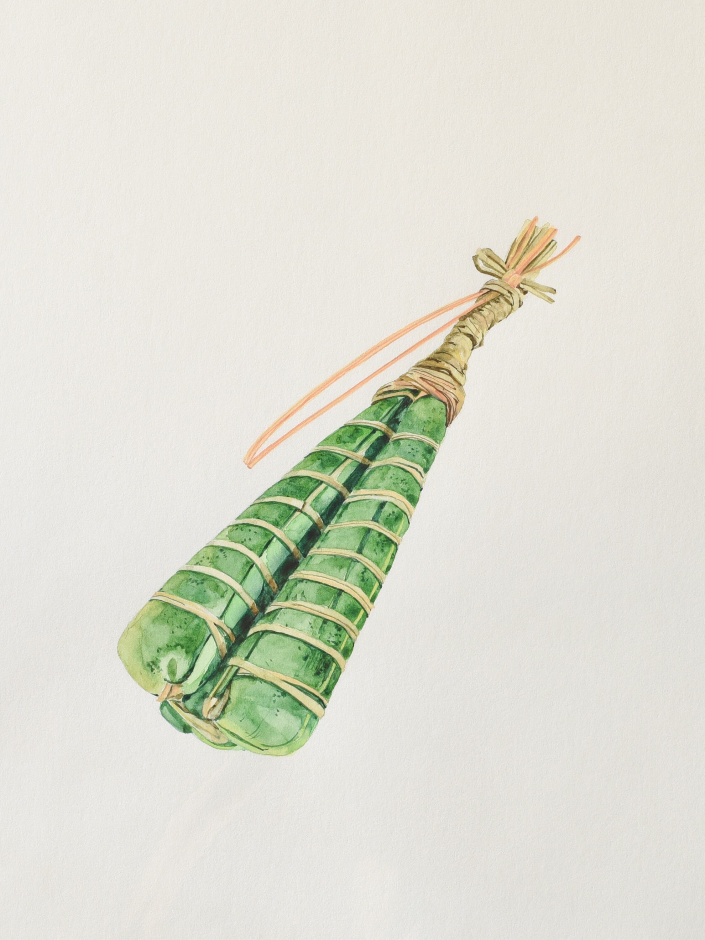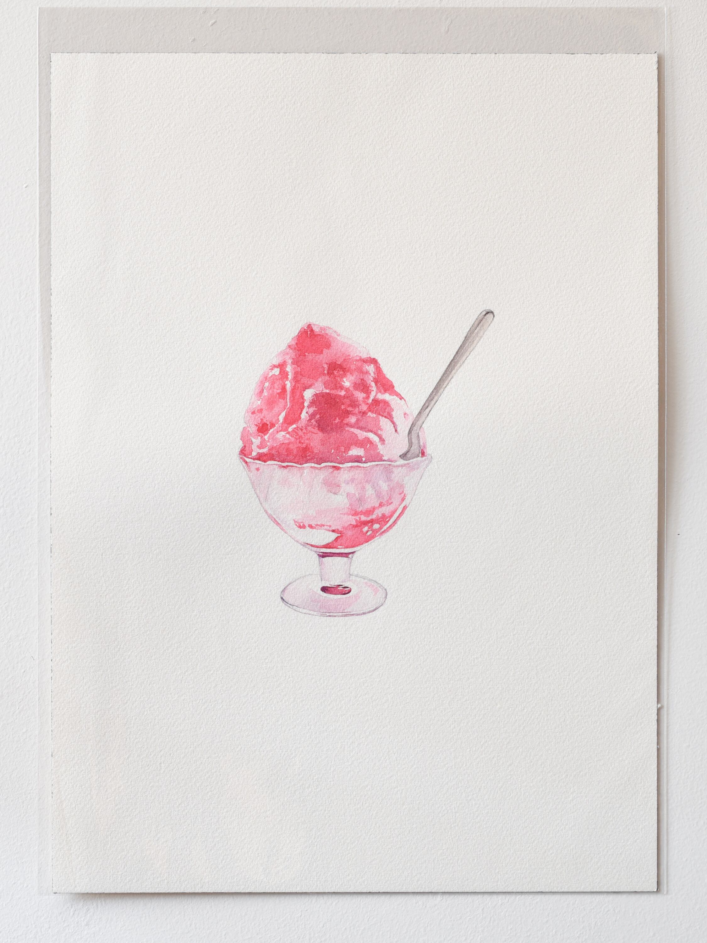 カレンダーのために描かれた四季の食べ物の水彩画です。描いていて「美味しそう」と思った瞬間が完成だそうです。