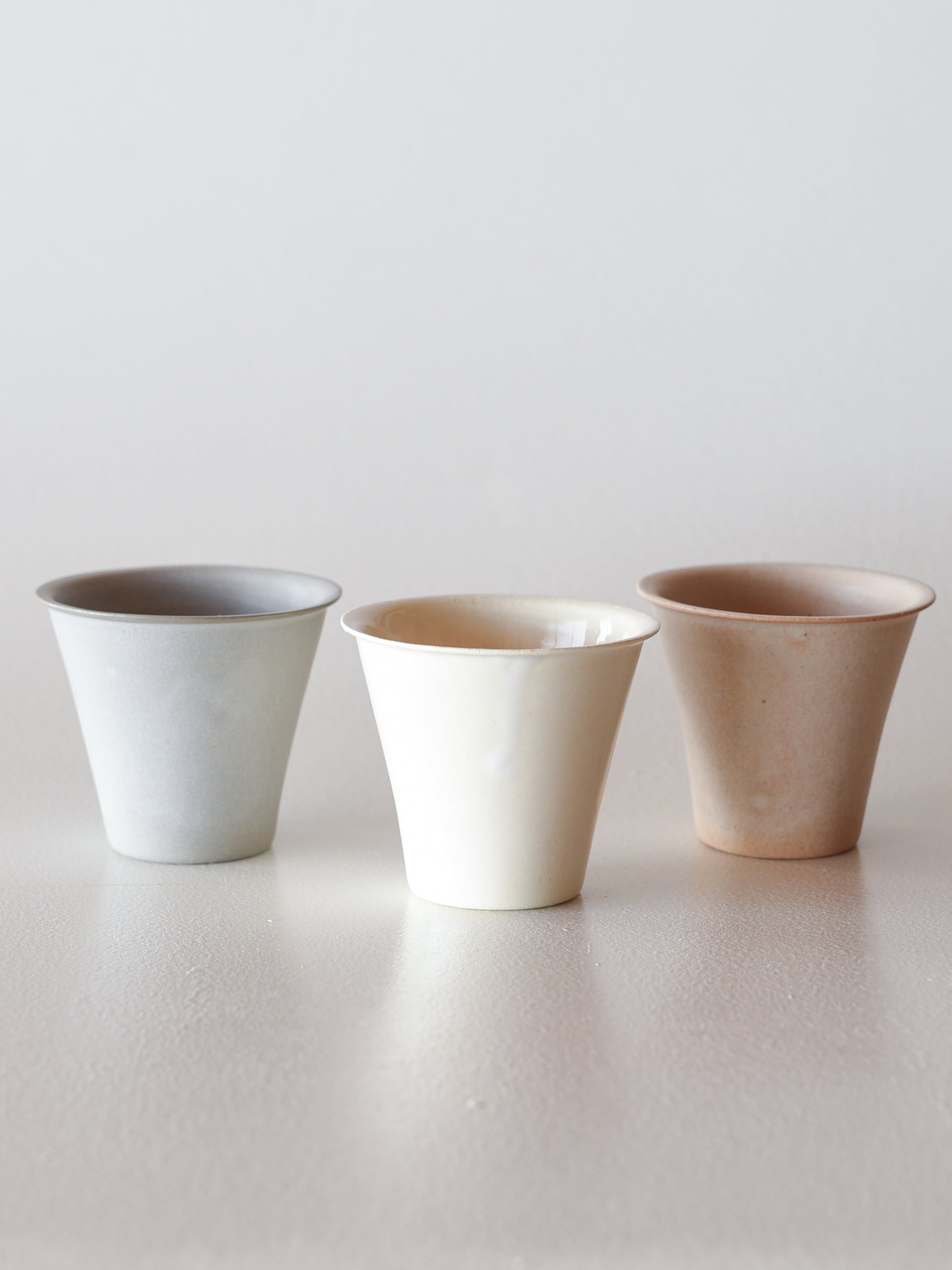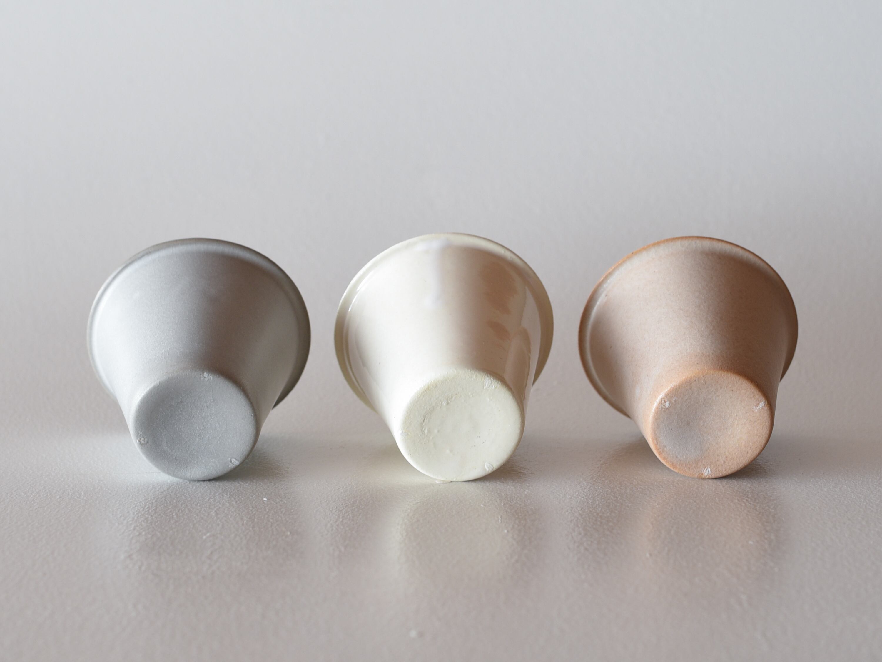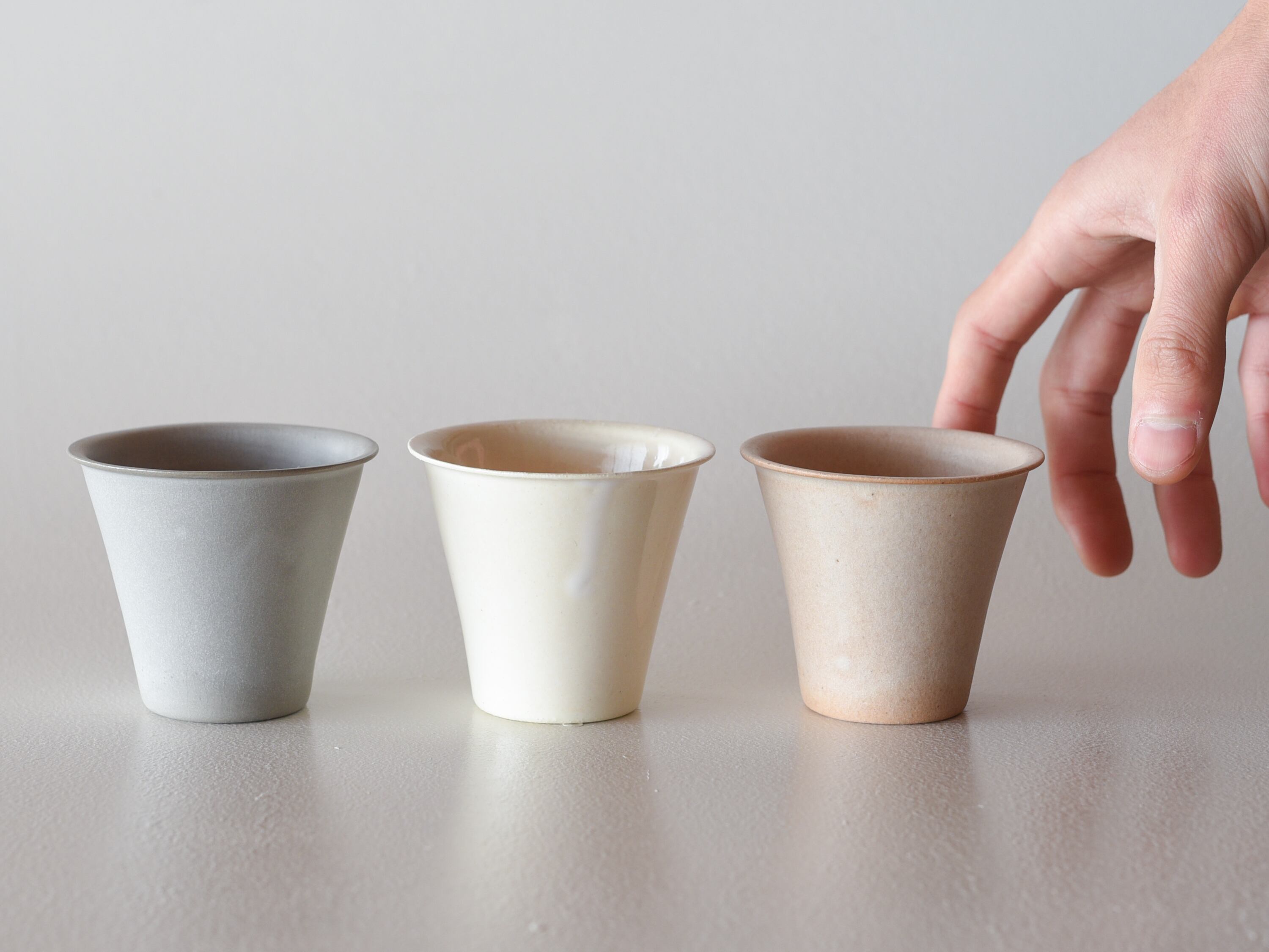 異なる色の土に白い化粧度を施し、日本の伝統的な焼き方で優しい色合いを生み出します。