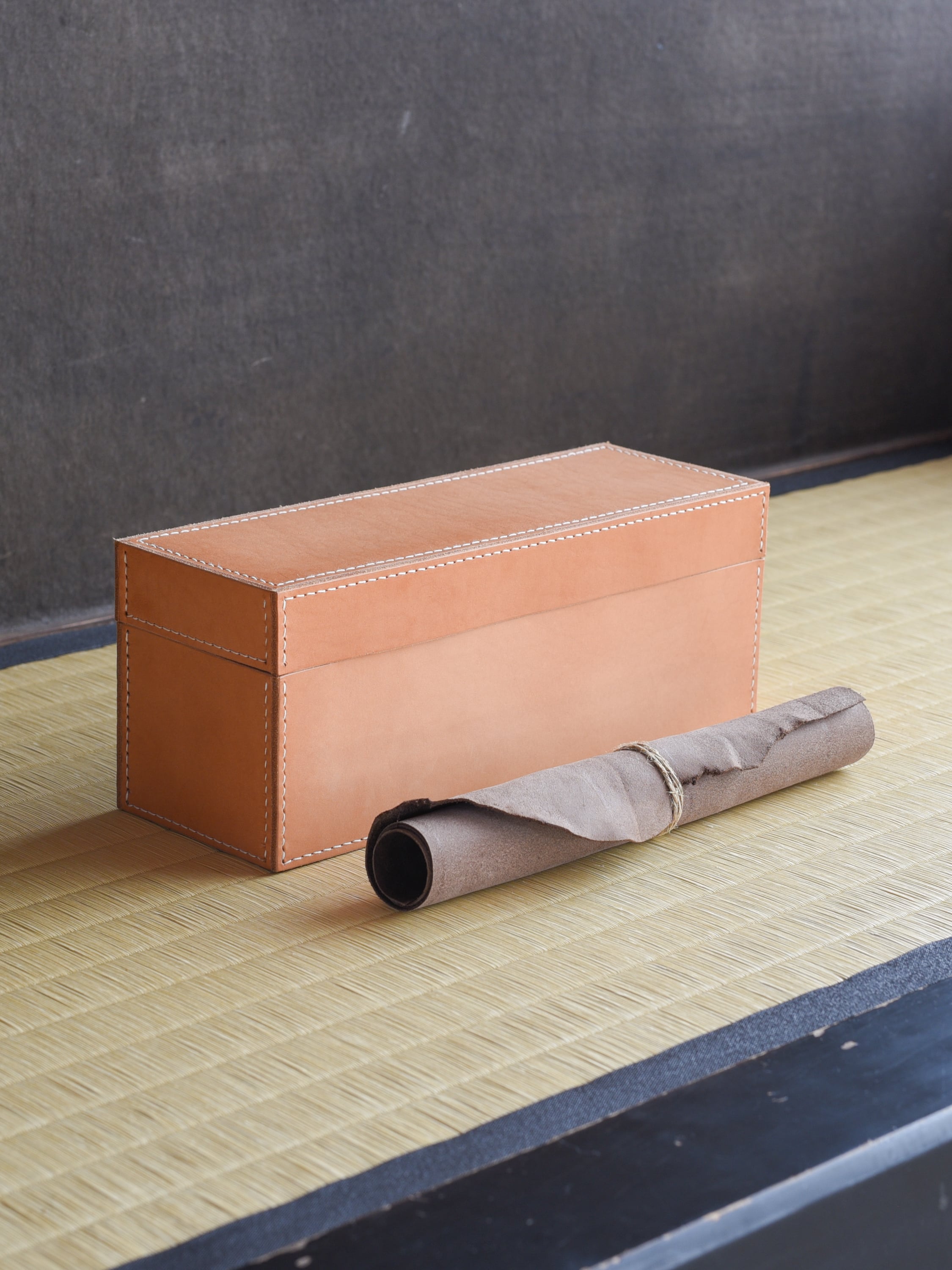 シューケアーを入れる箱でも、茶碗を入れて野点でも。