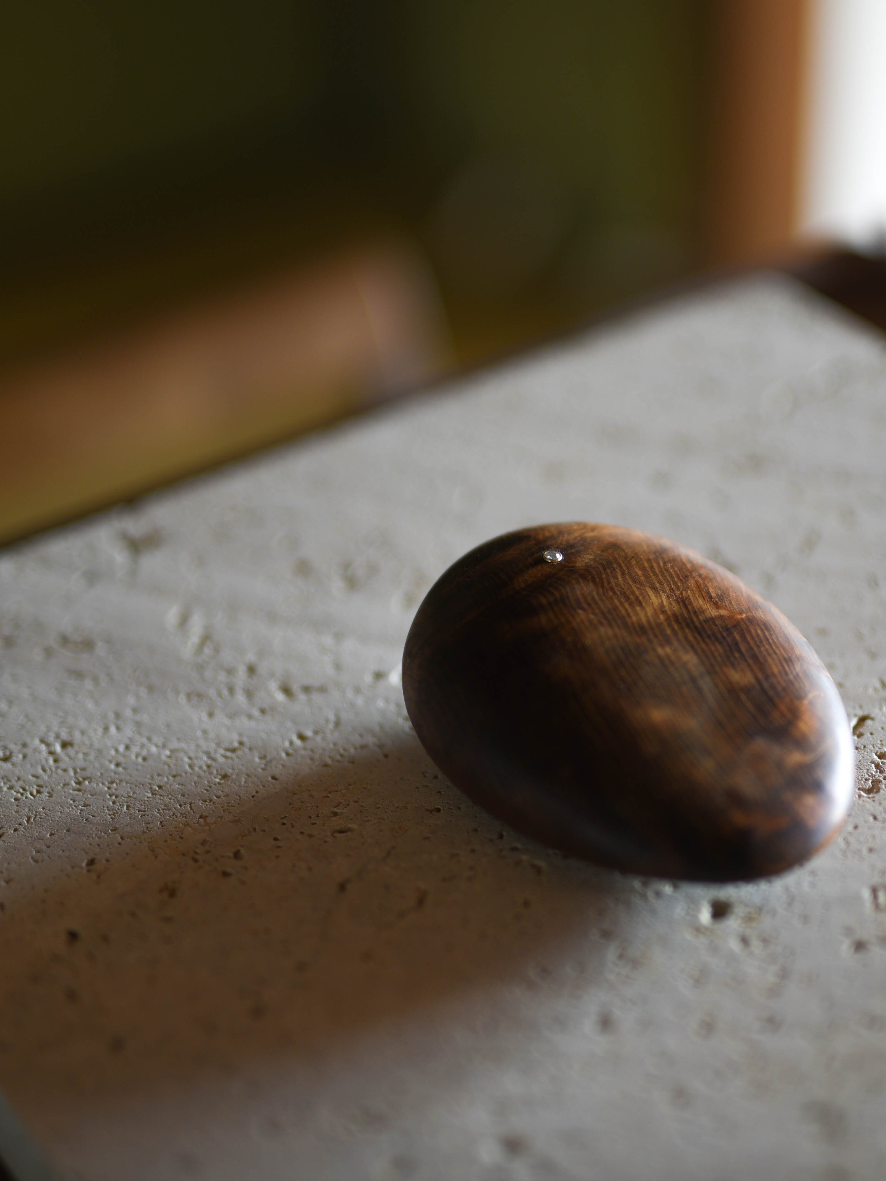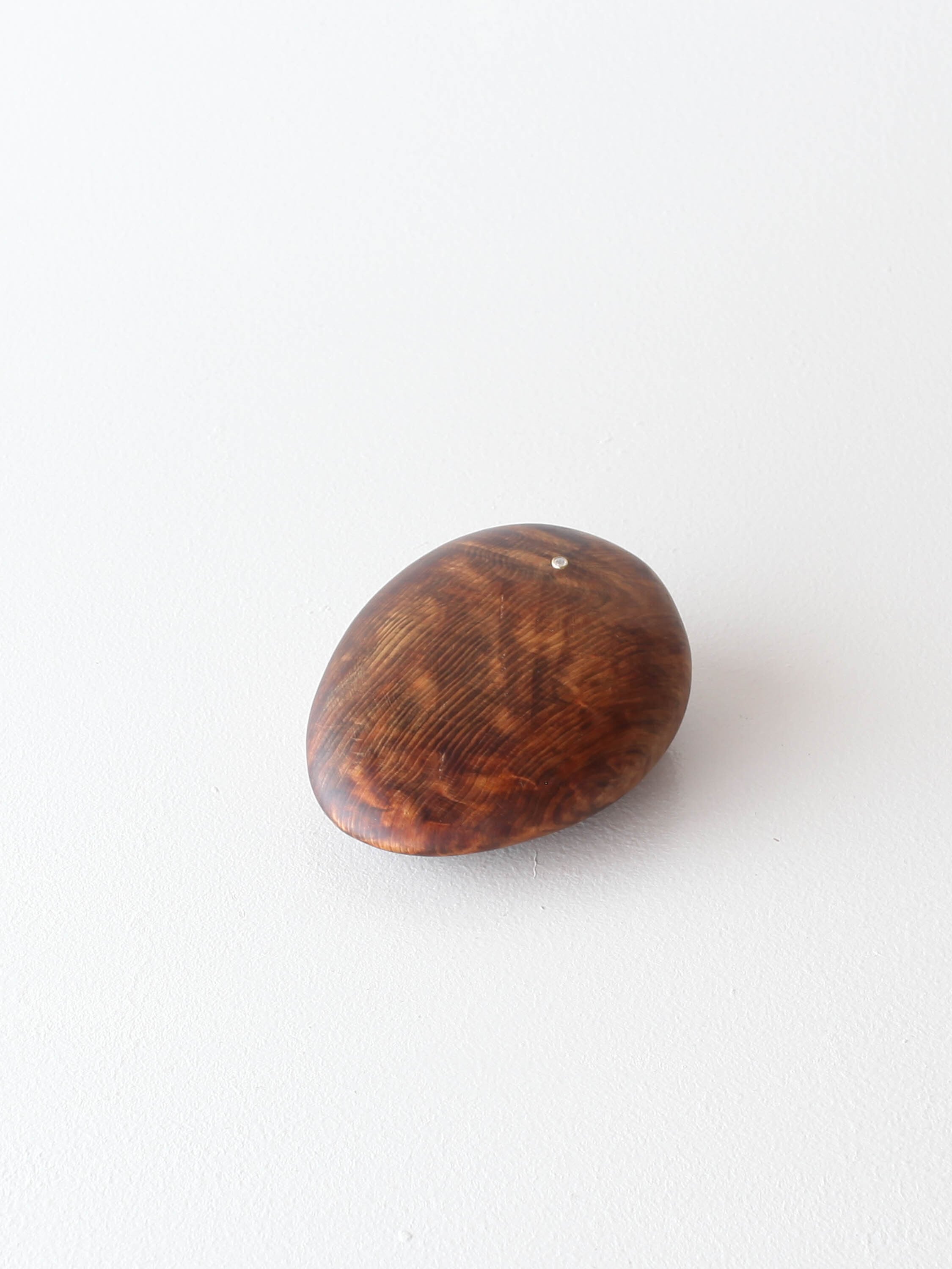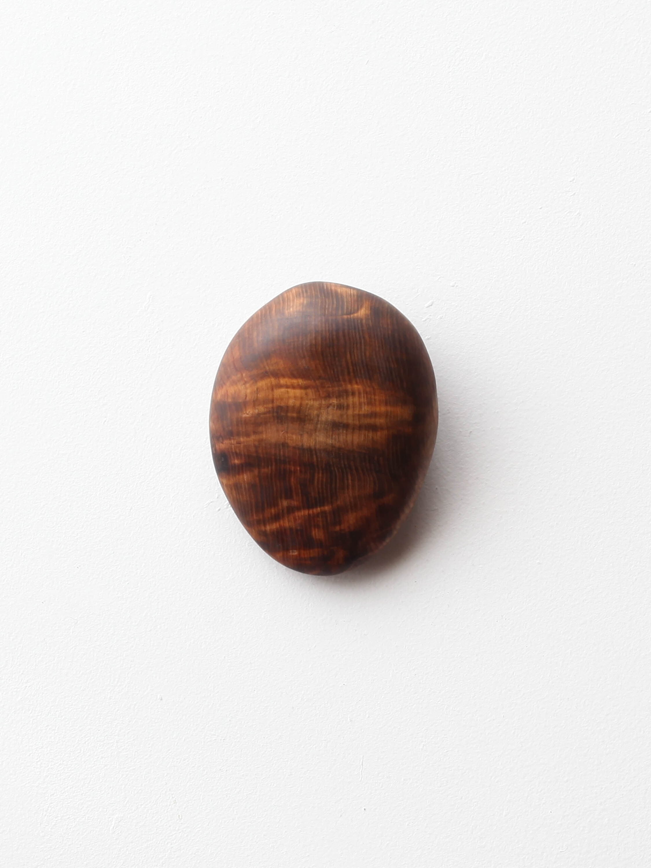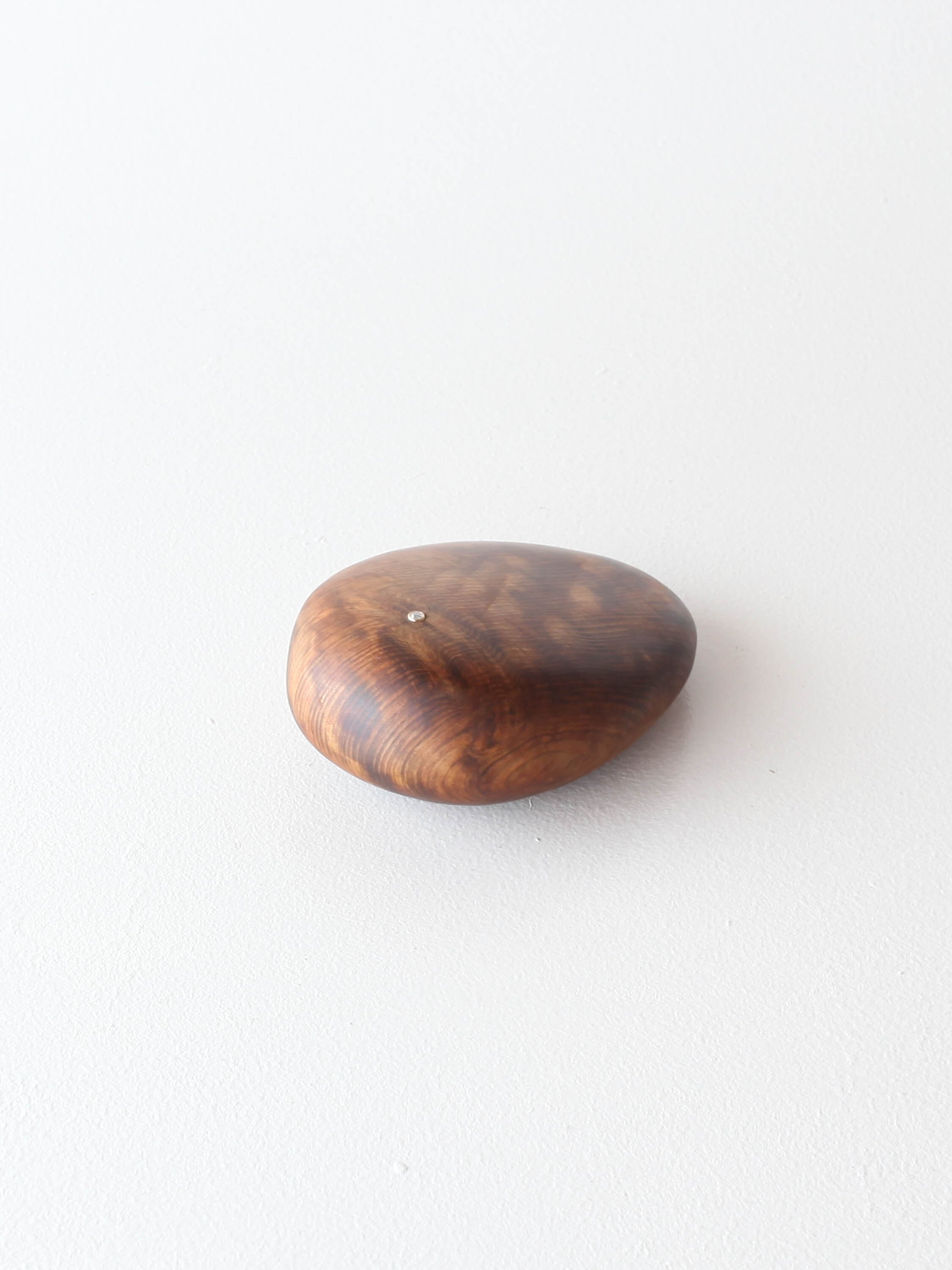 市川さんは主に旋盤を使った丸い形の仕事をしますが、今回は旋盤を使わず荒削りにした木を最後はやすりがけをして仕上げた石のような形。