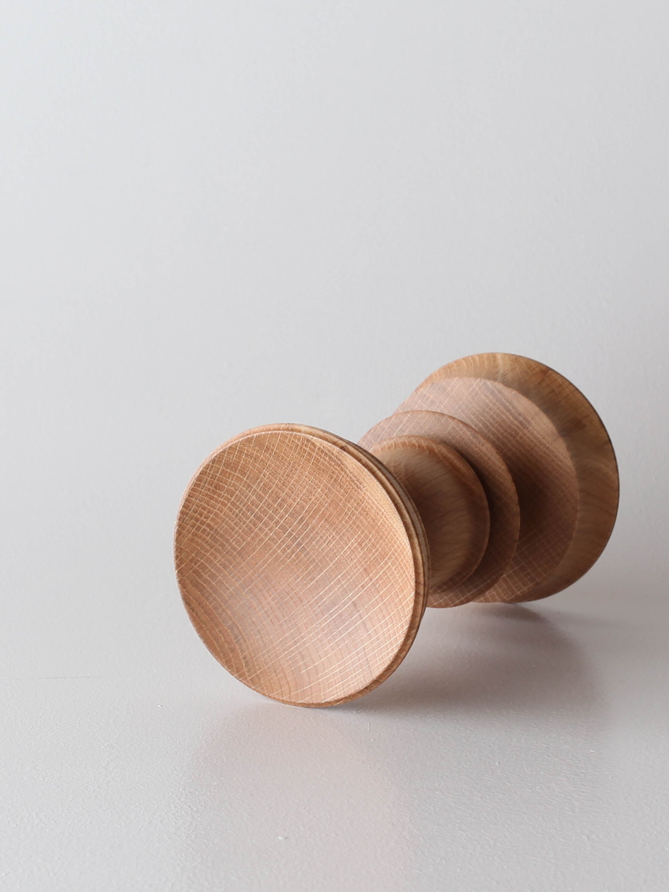 市川さんの飾台でスタンダードなのはこの形、天地を変えてもどちら面を上にしてもいいデザインで、薄暗いなかで灯るろうそくの光に照らされる木目はずっと見ていられます。