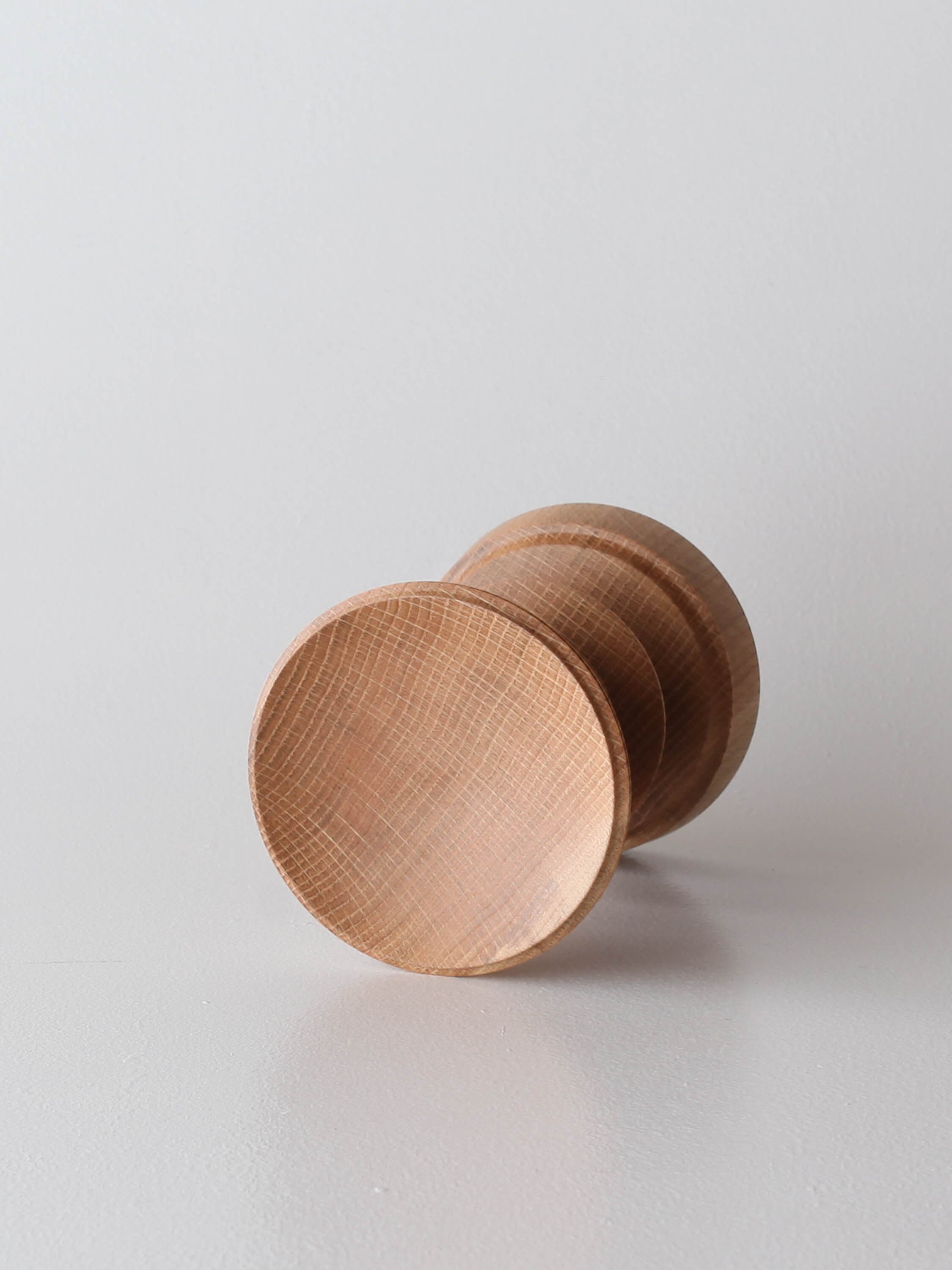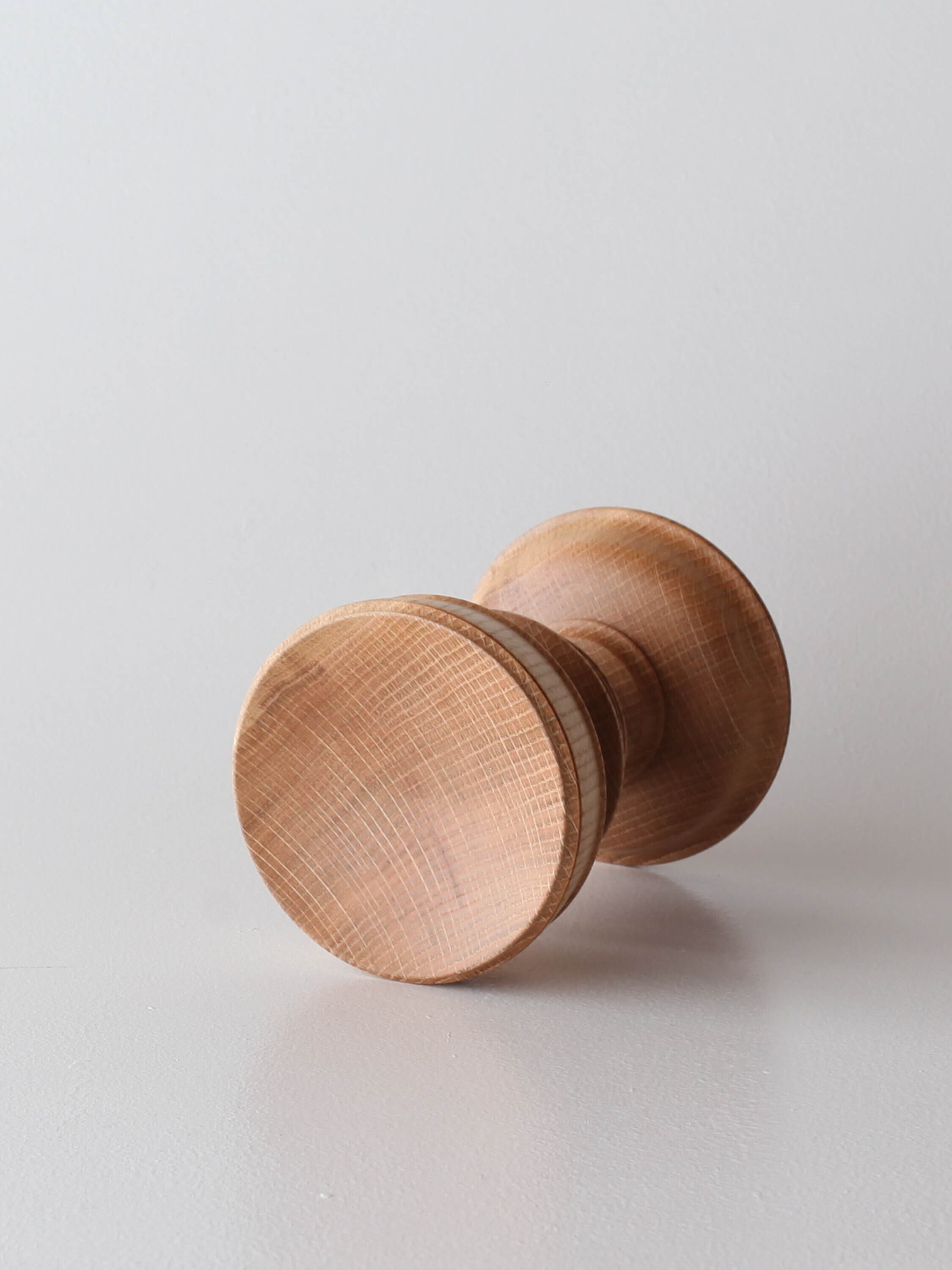 市川さんの飾台でスタンダードなのはこの形、天地を変えてもどちら面を上にしてもいいデザインで、薄暗いなかで灯るろうそくの光に照らされる木目はずっと見ていられます。