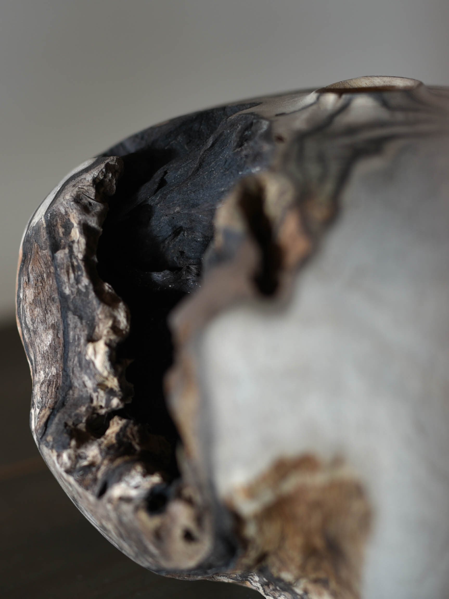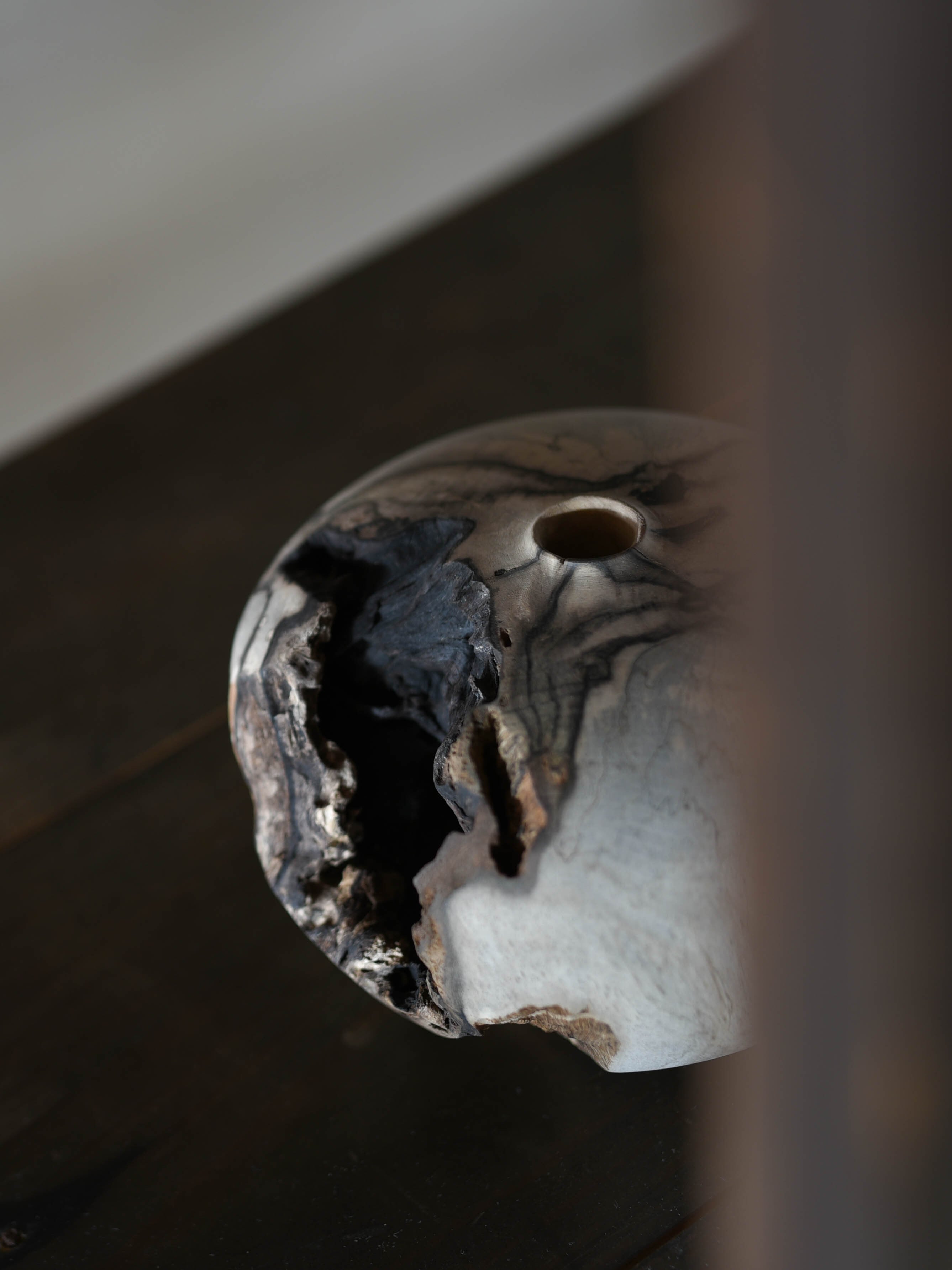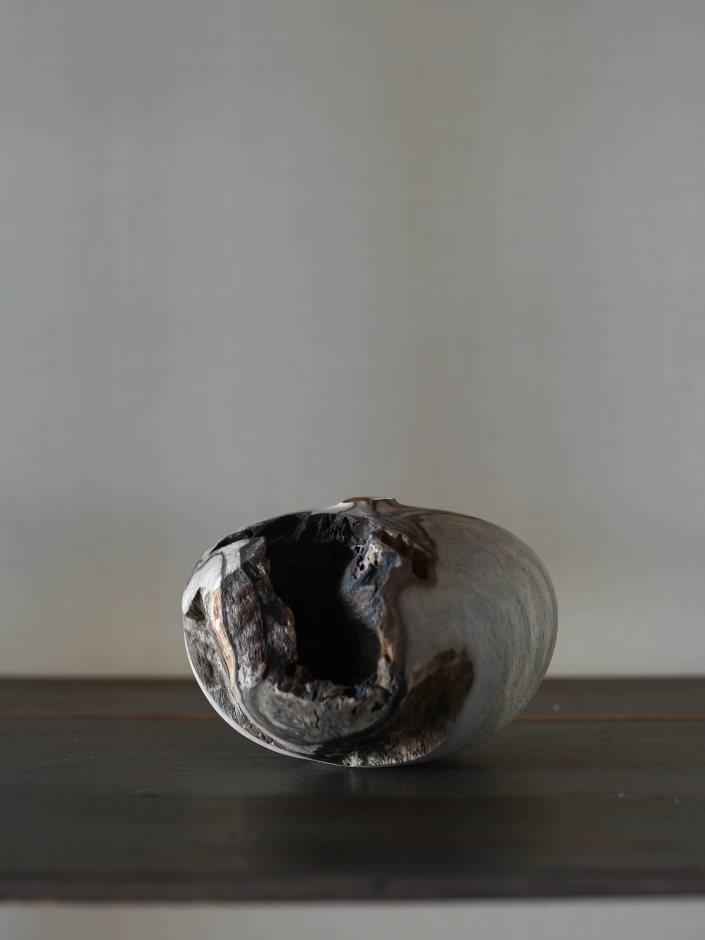黒柿のなかでも朽ちて欠けのある部分を生かして作られたオブジェ的な作品。