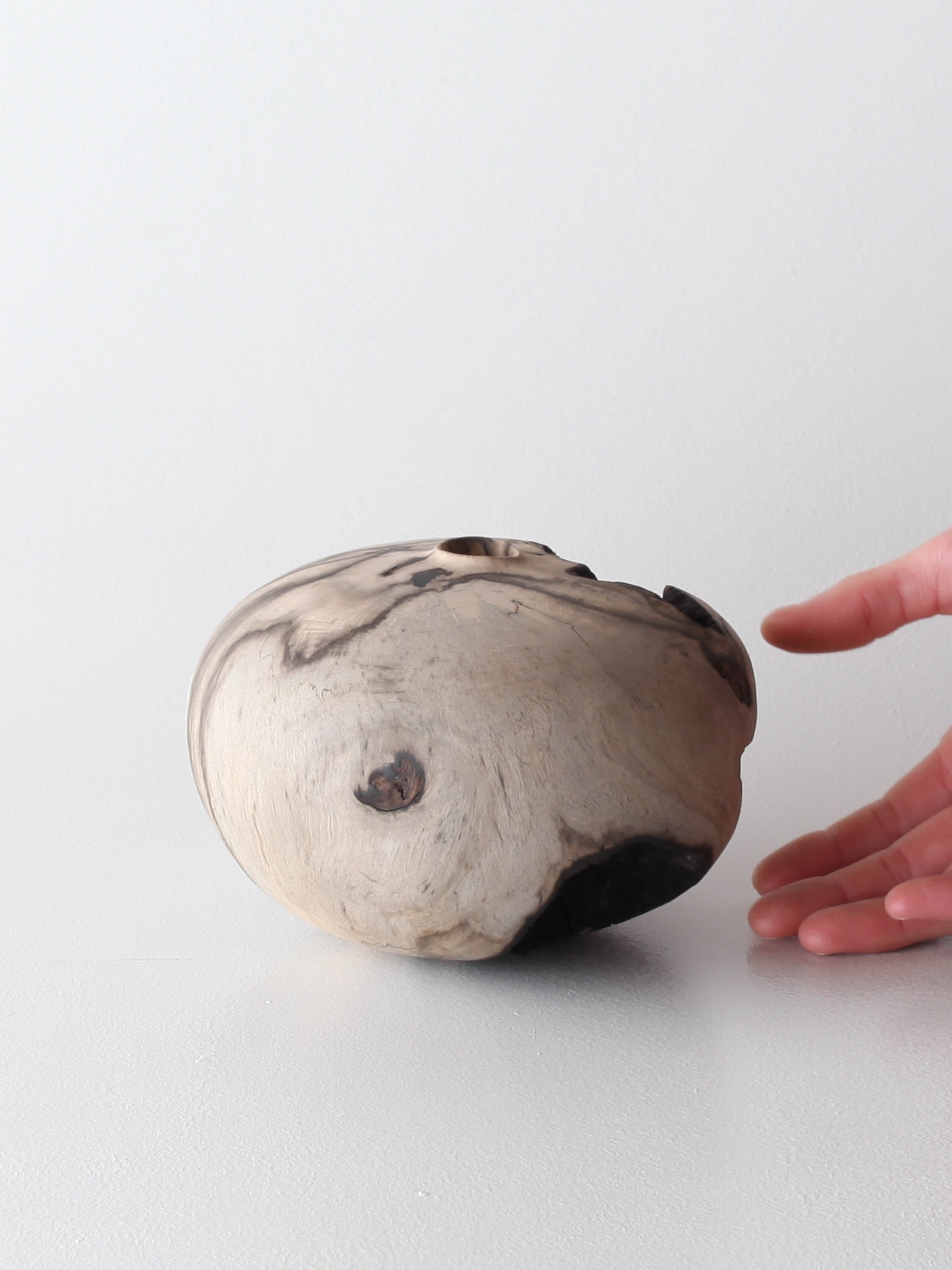 欠けの部分とつるんとした黒い墨模様がある部分と、その日の気分で回してみると全く異なる表情の見られる作品です。