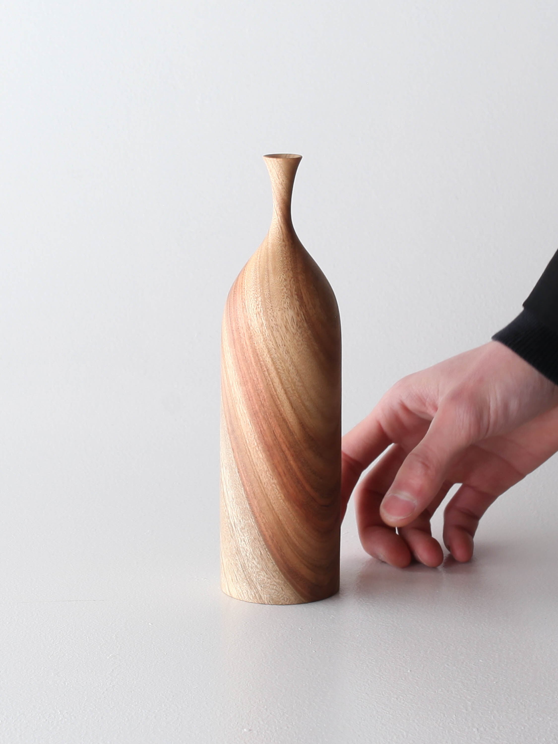 木の持つ性質、景色を独自の感性で読み取り、オブジェや花器、リングスタンドを製作。空間の中に溶け込むような1点ものの作品を展示します。