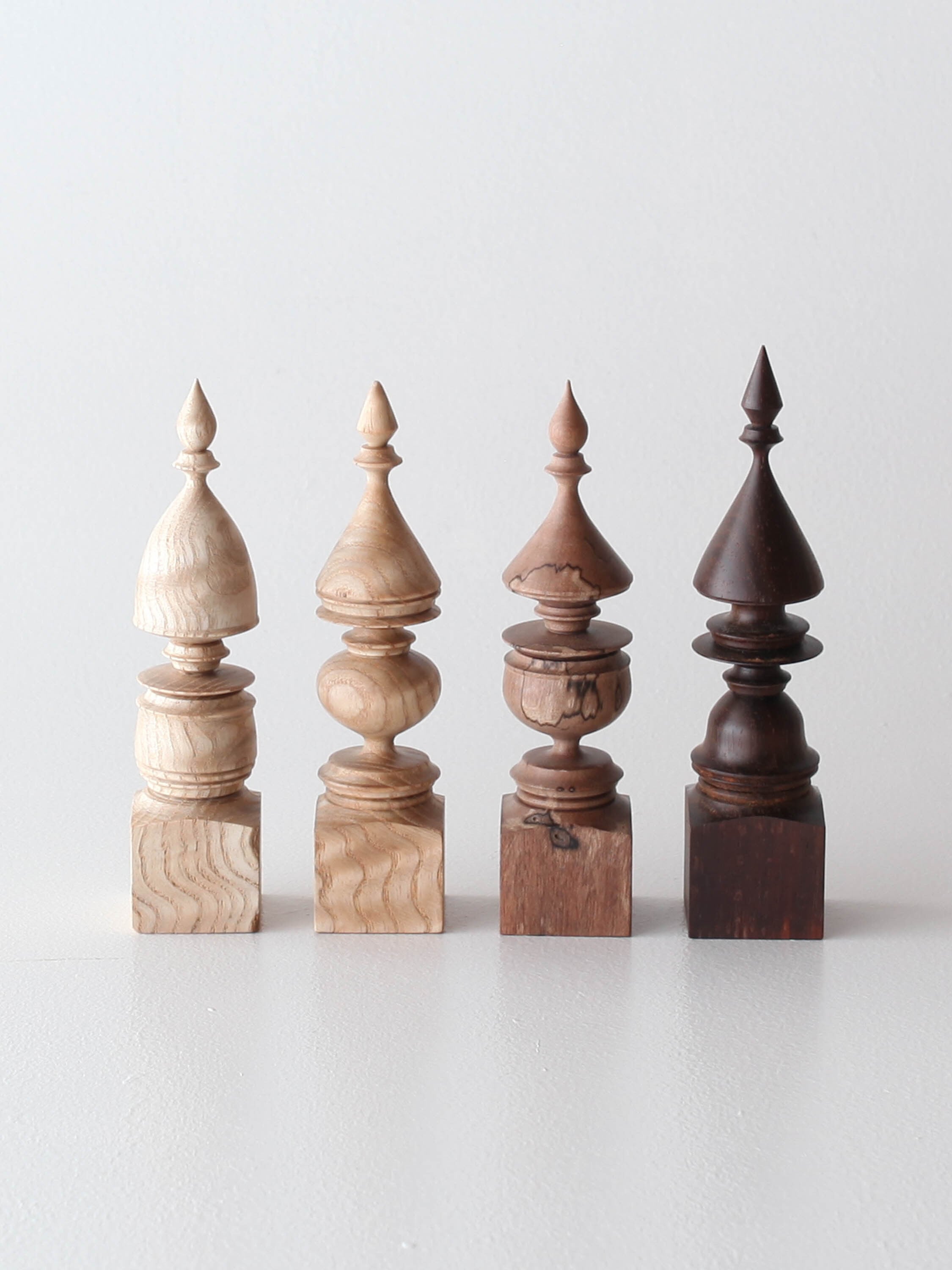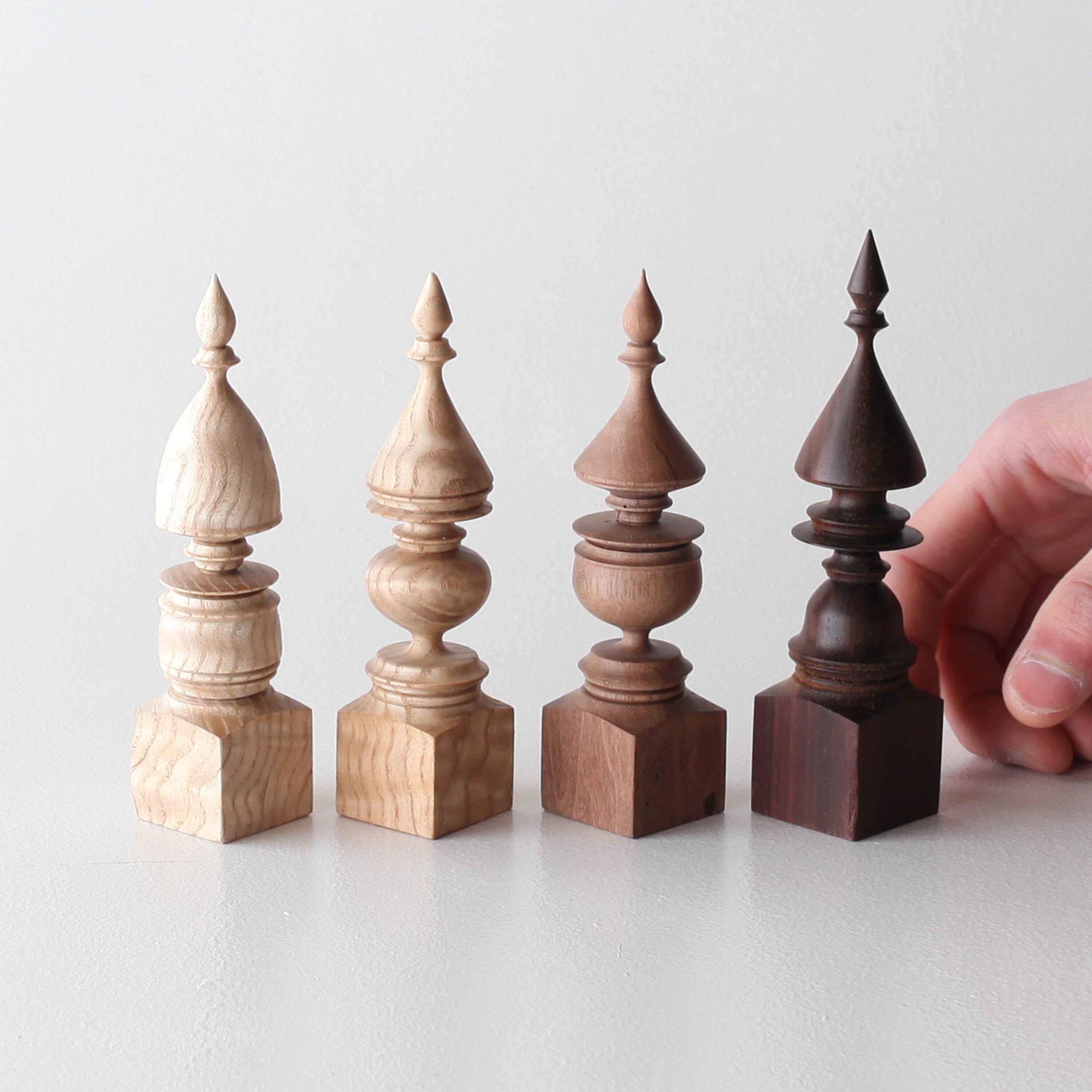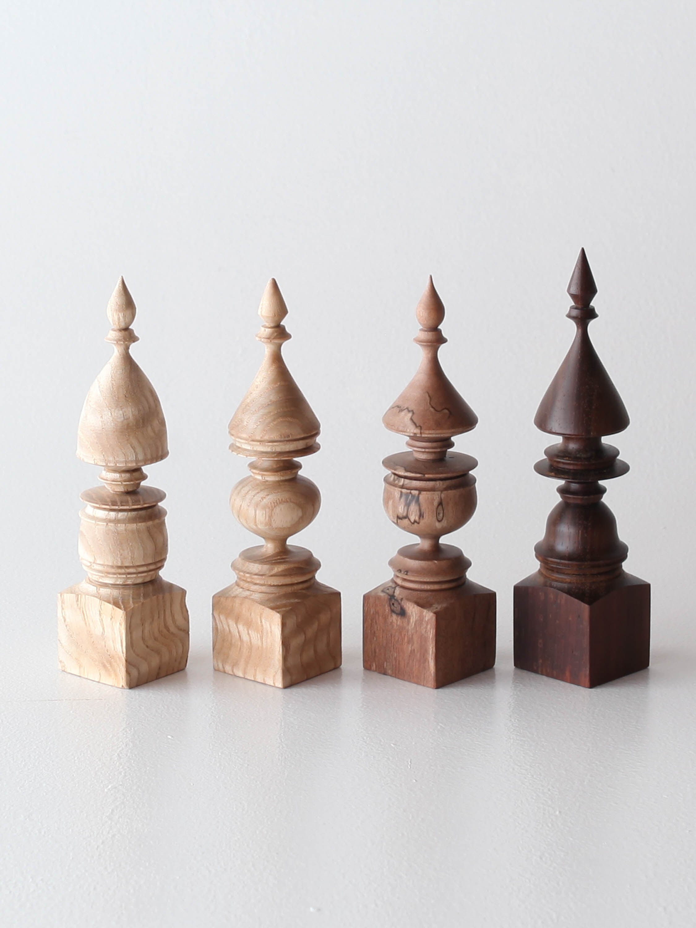 小さな細かい造形に木目と色合いが重なり美しい作品。