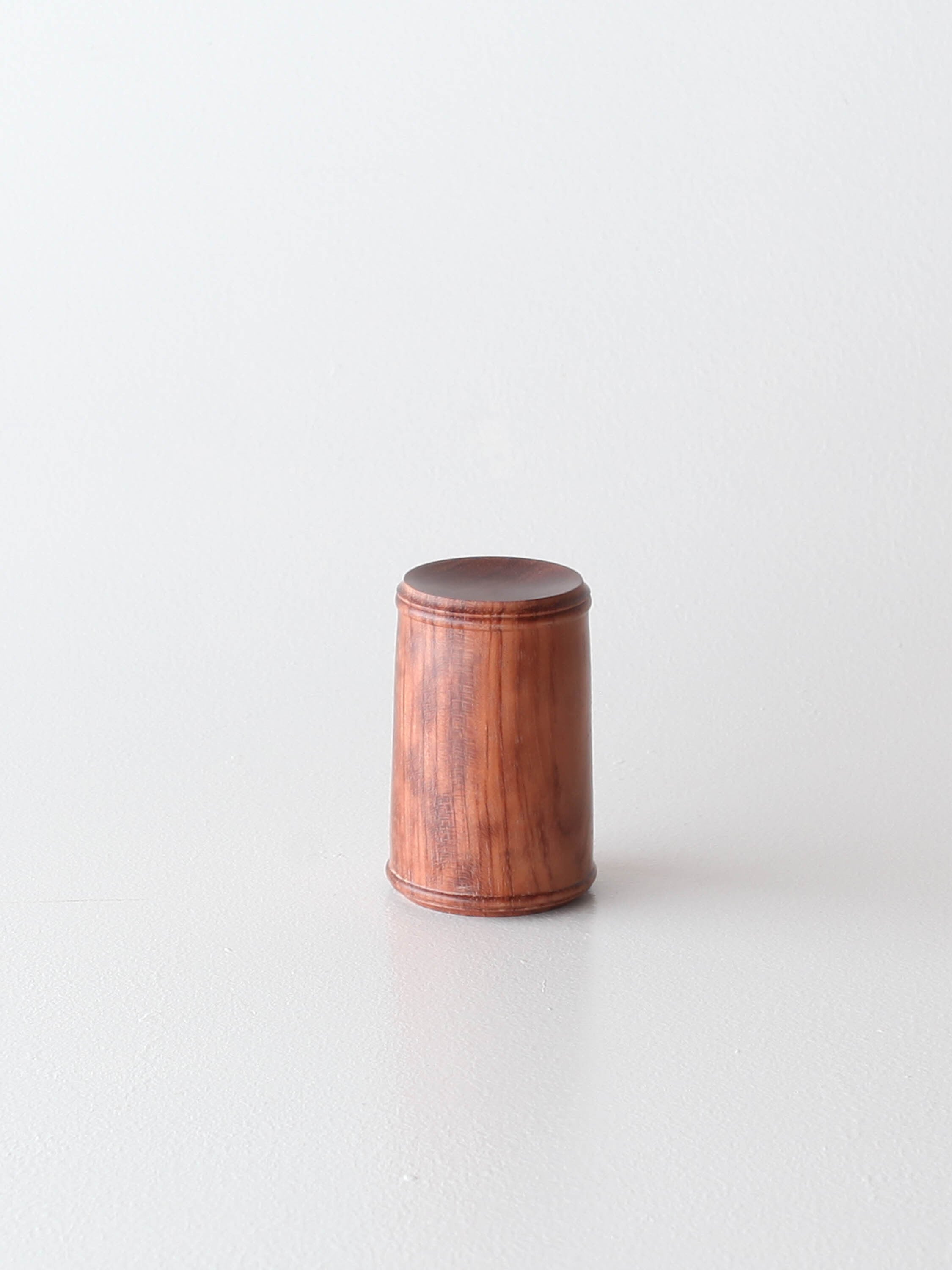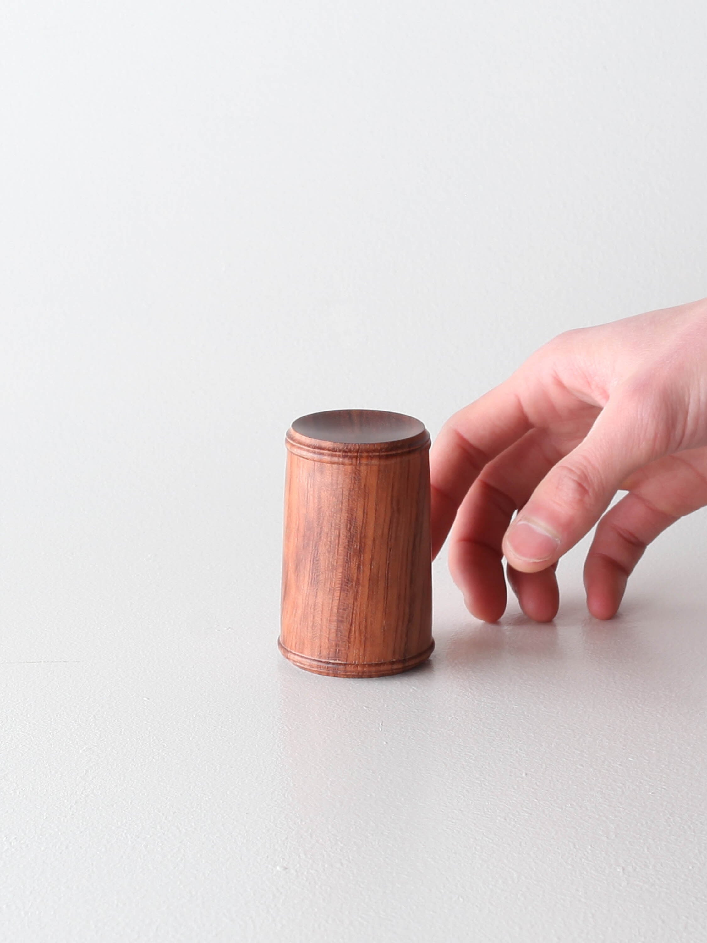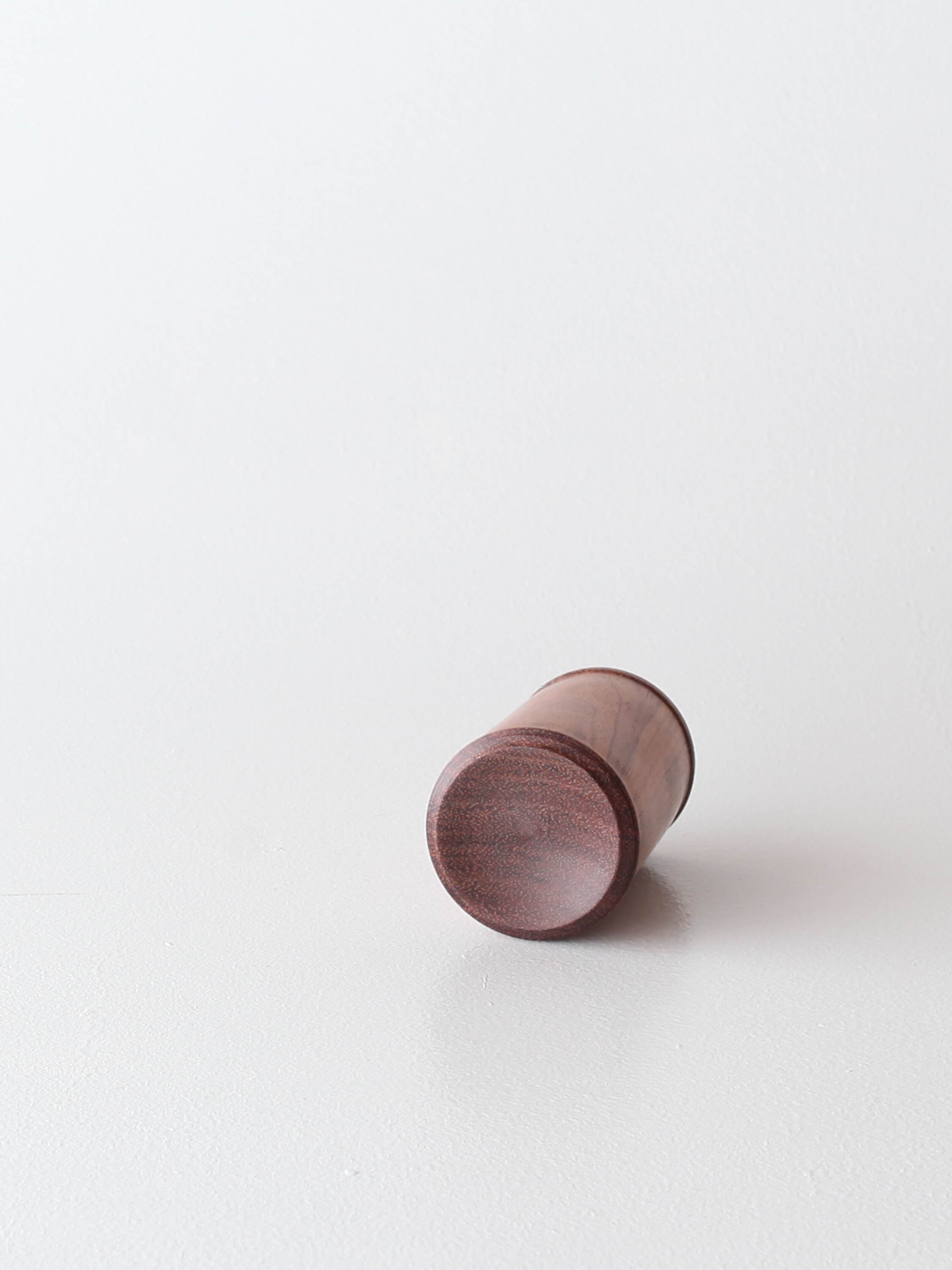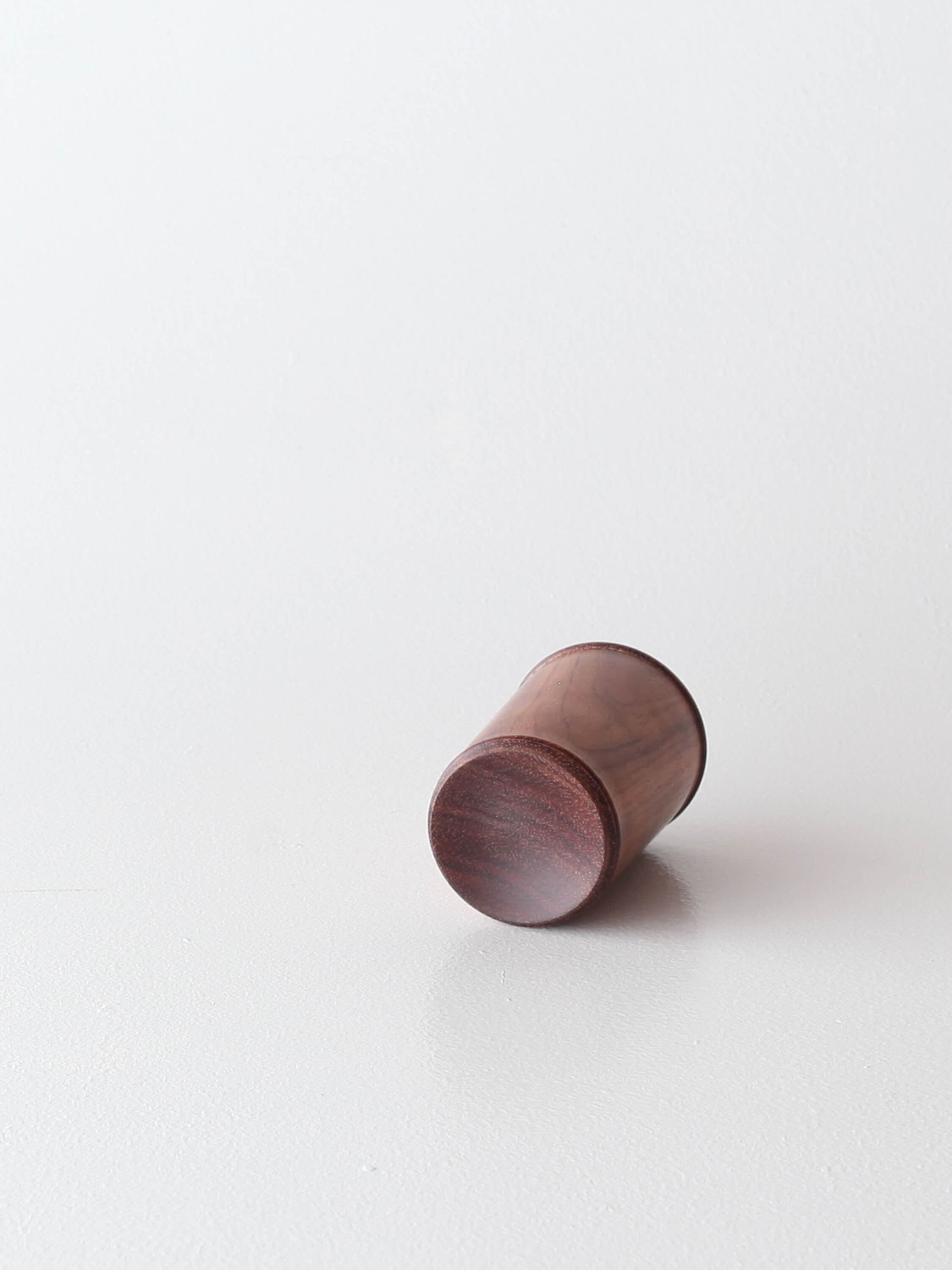 寸胴の形を飾台は、今展示のために作られました。ぽつりとひとつ大切なジュエリーを置くための飾台。シンプルな形だと木目の美しさがより際立ってわかります。