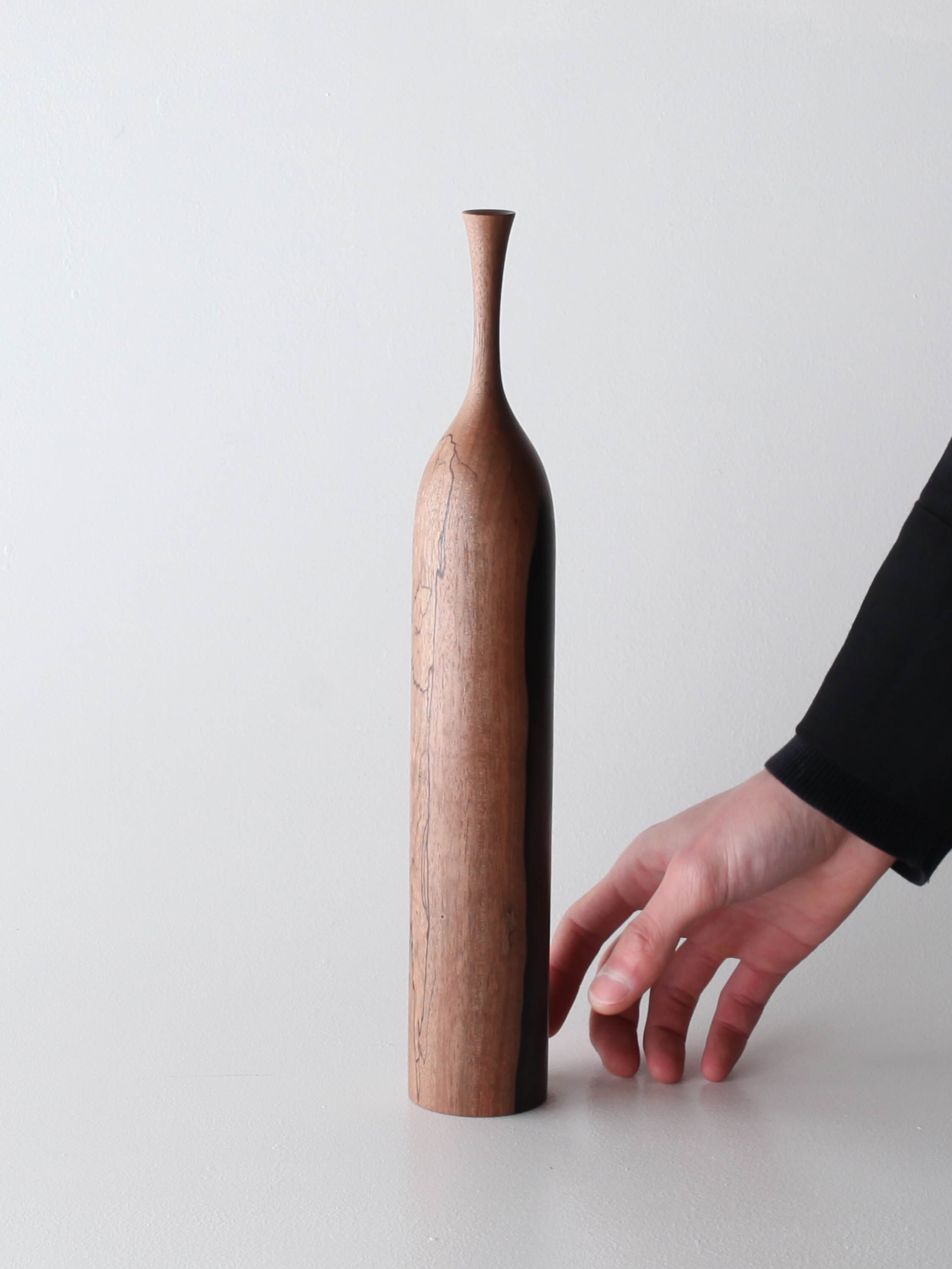 木の持つ性質、景色を独自の感性で読み取り、オブジェや花器、リングスタンドを製作。空間の中に溶け込むような1点ものの作品を展示します。