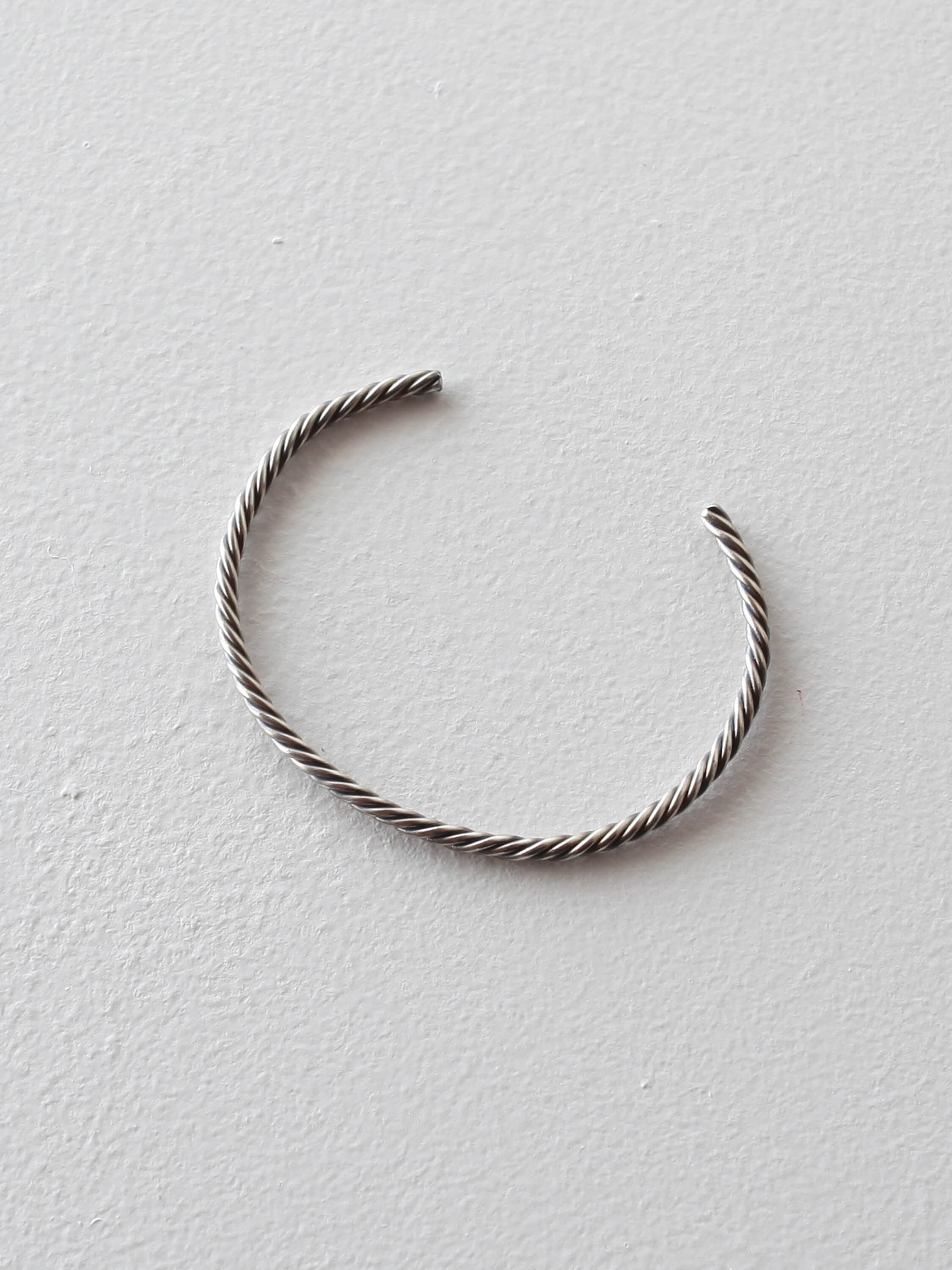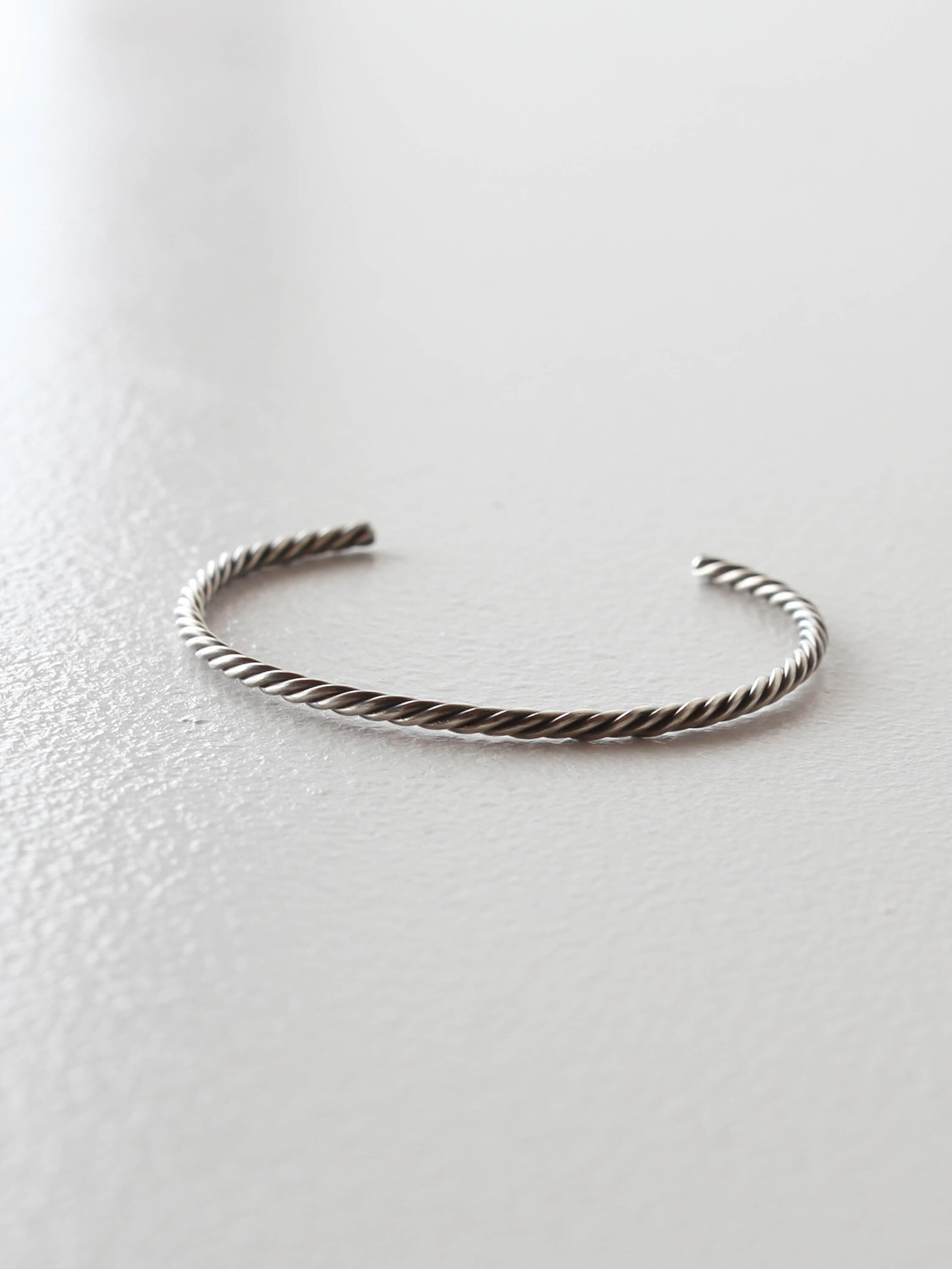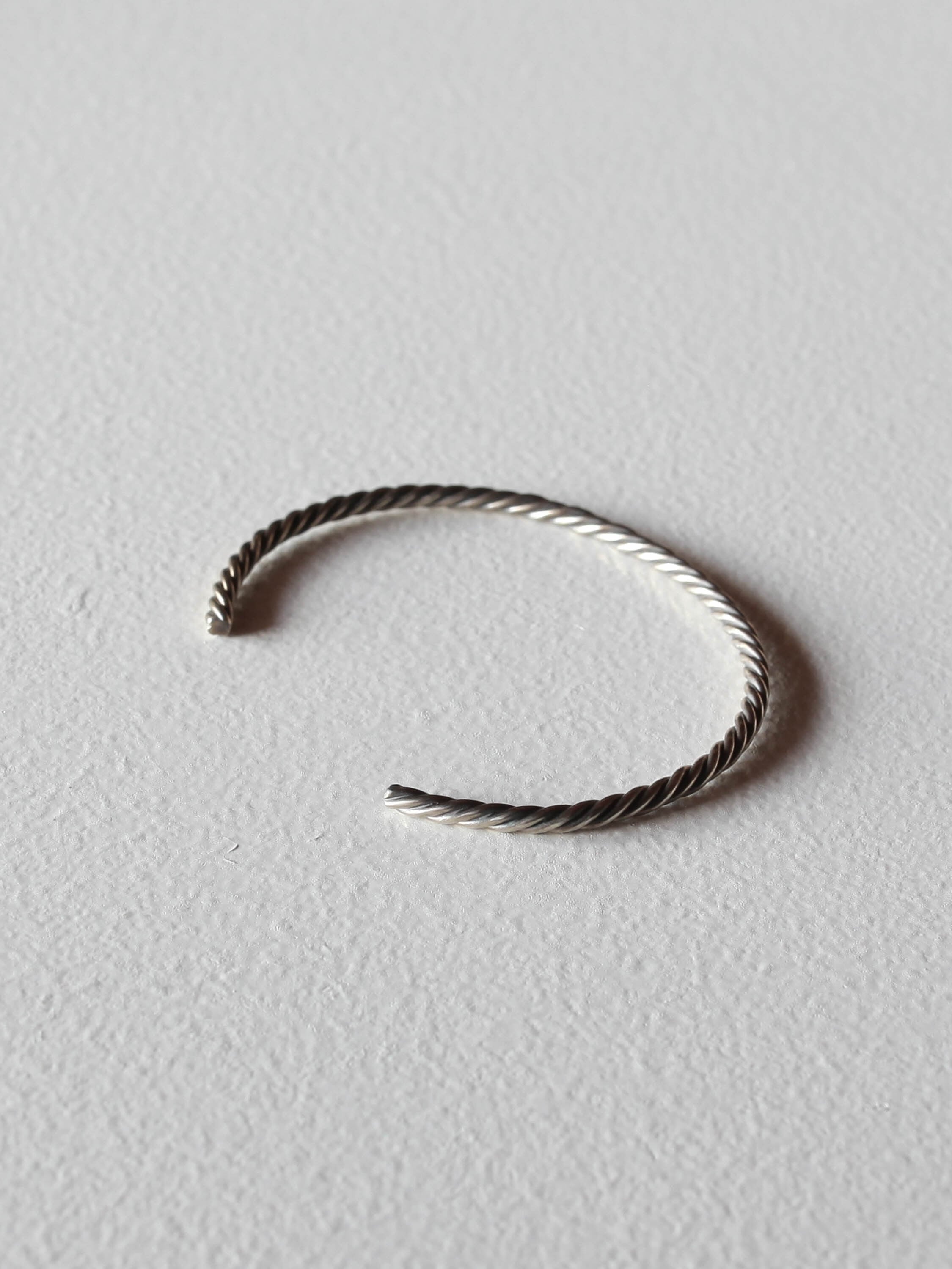 素材を針金のように細くしたものを手作業で捻って制作されるバングル