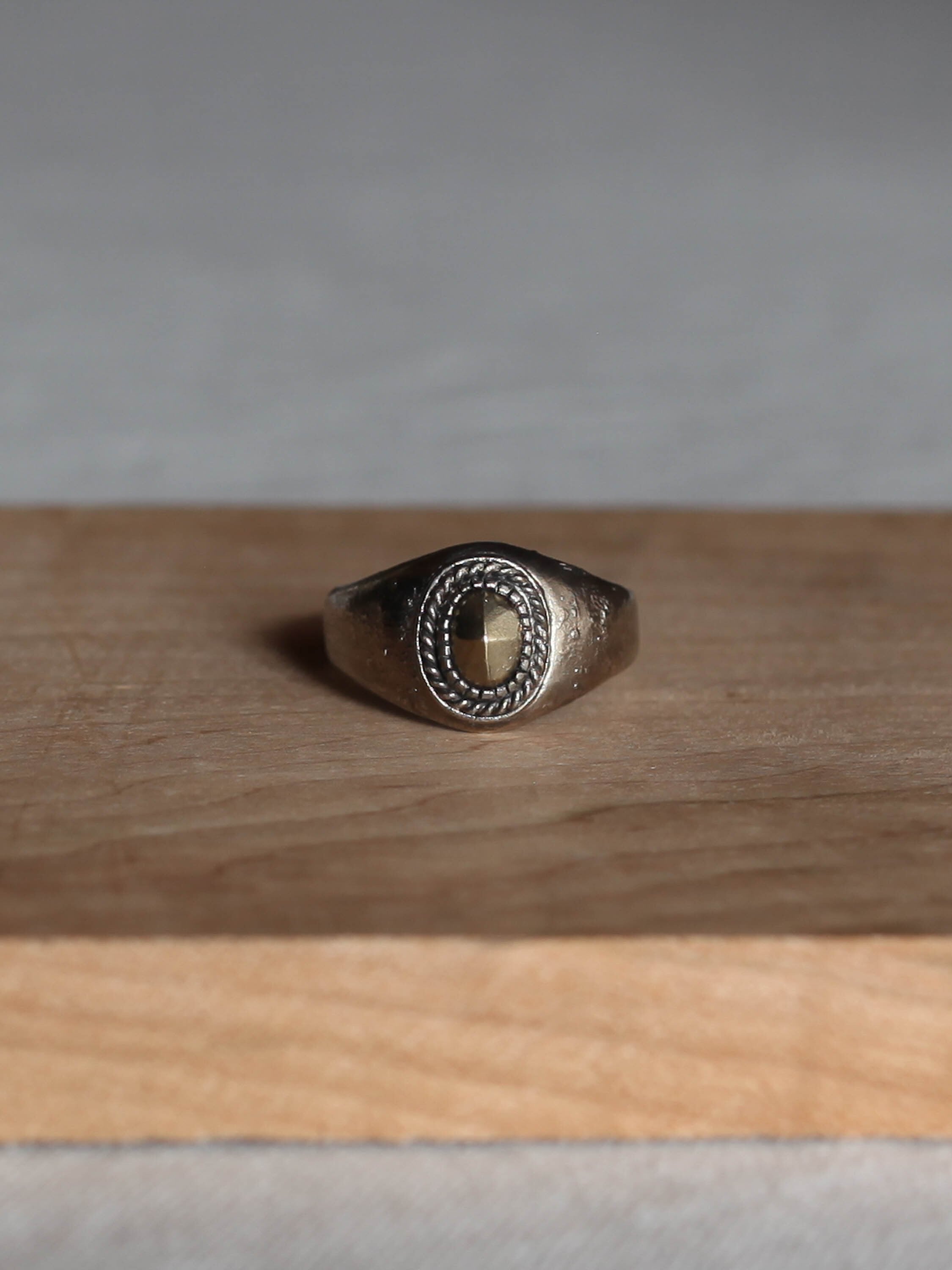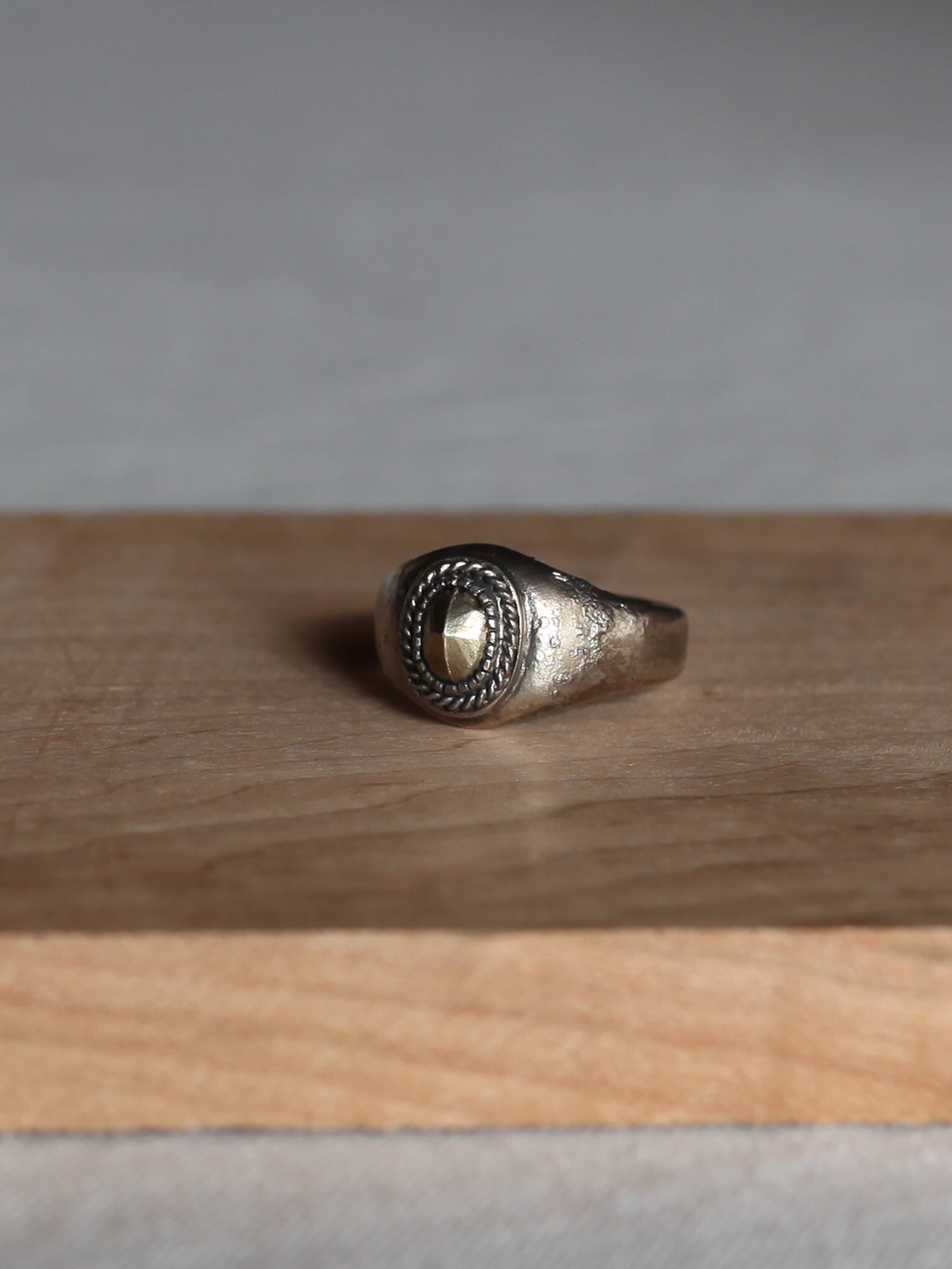 ダイヤモンドのローズカットの型を取りK18YGを流して石の代わりに添えたリングとなります。